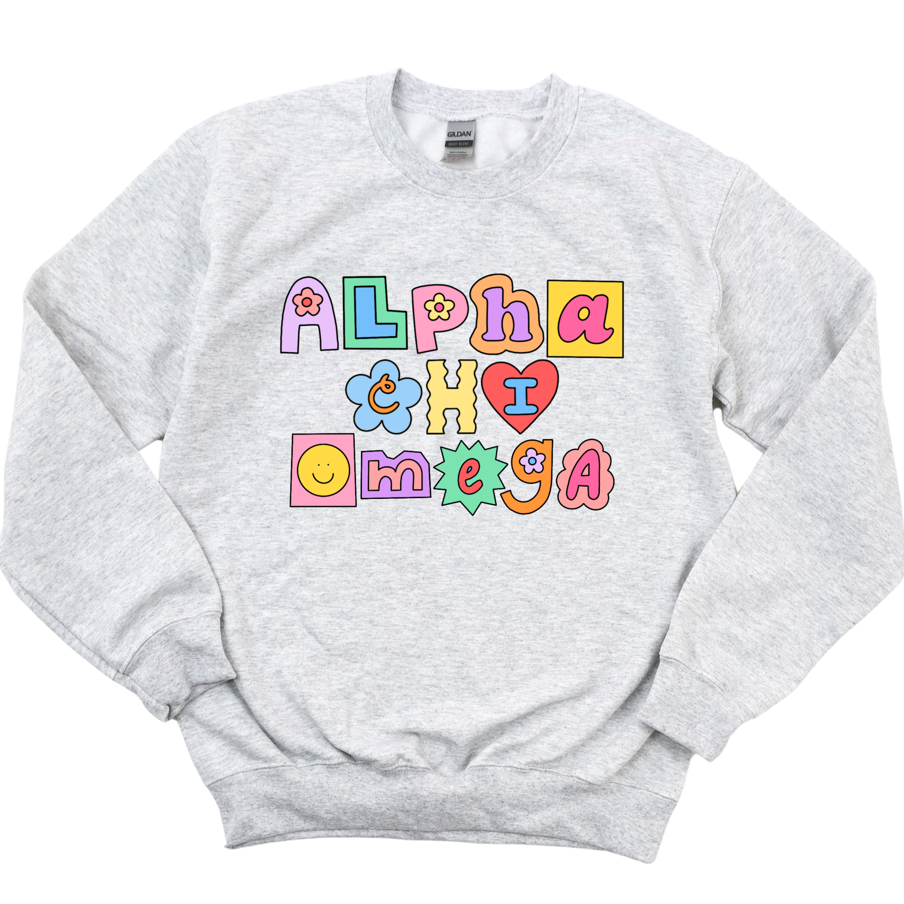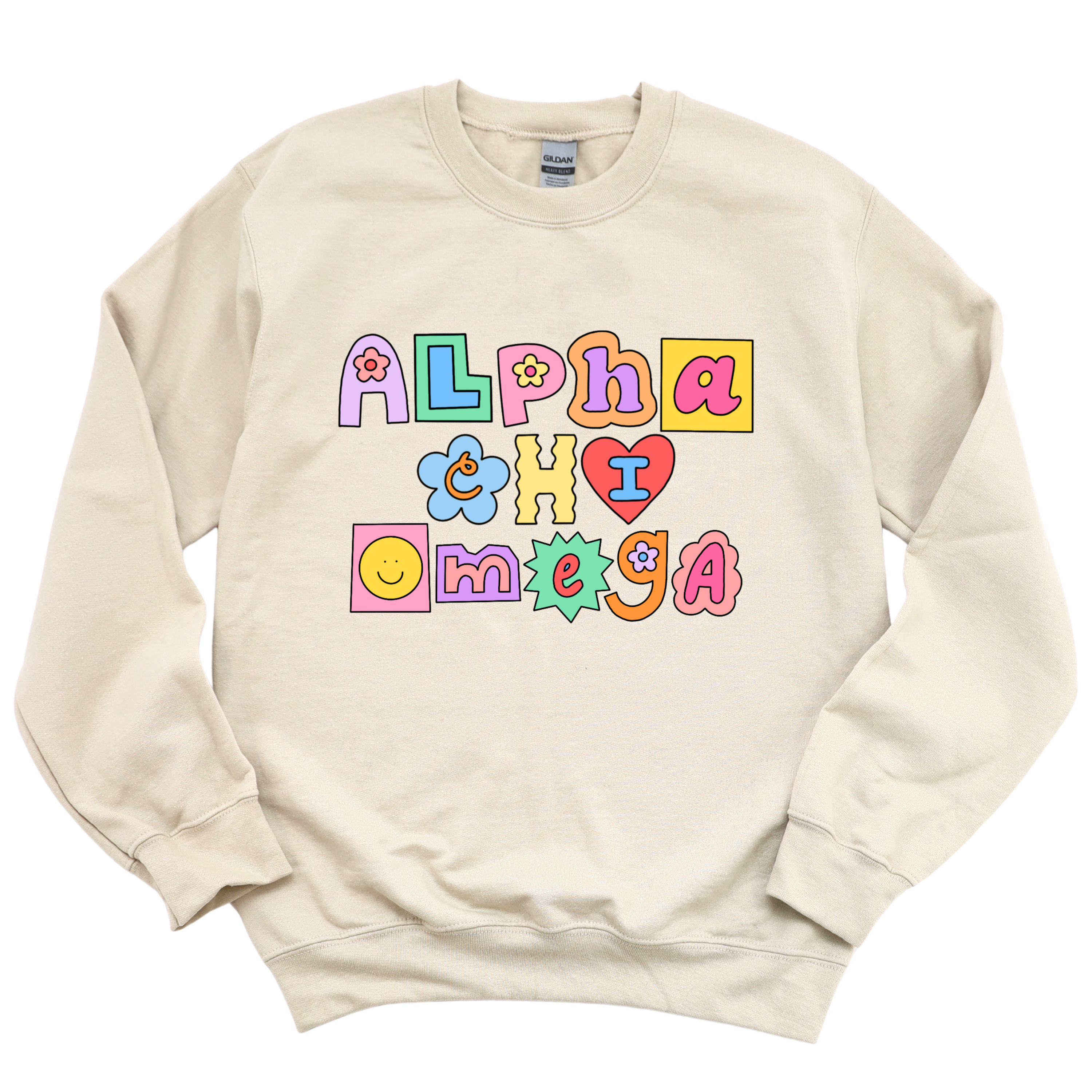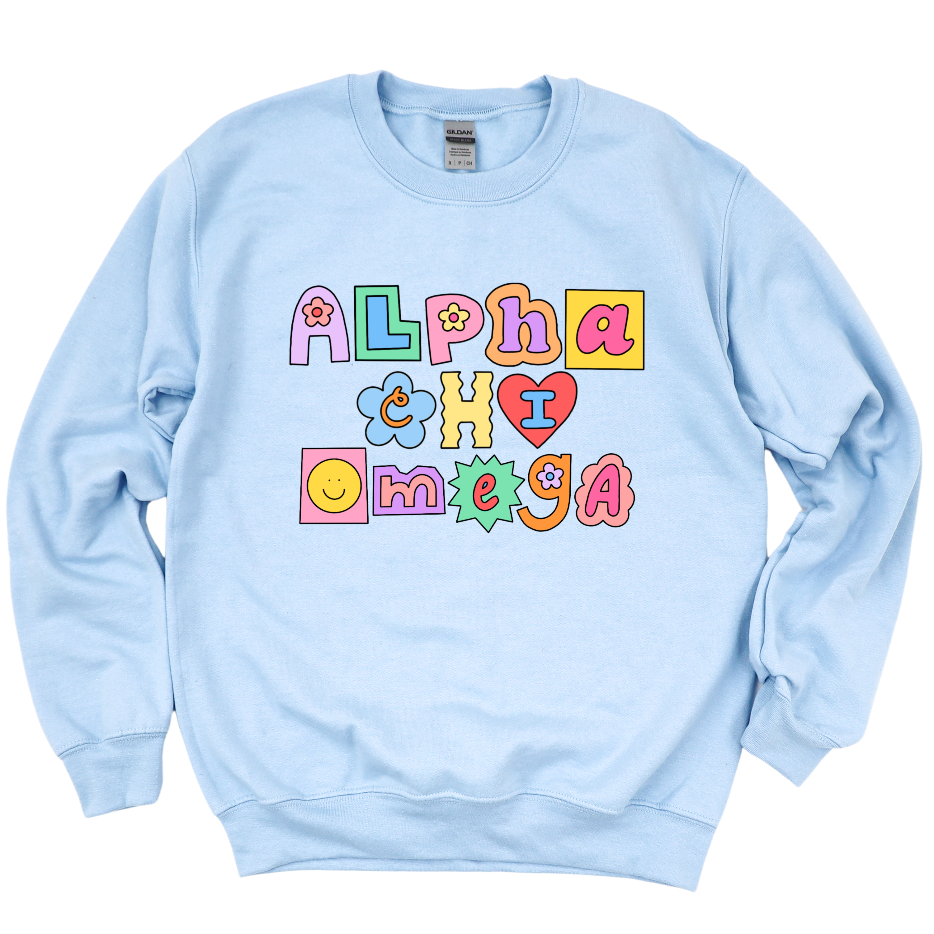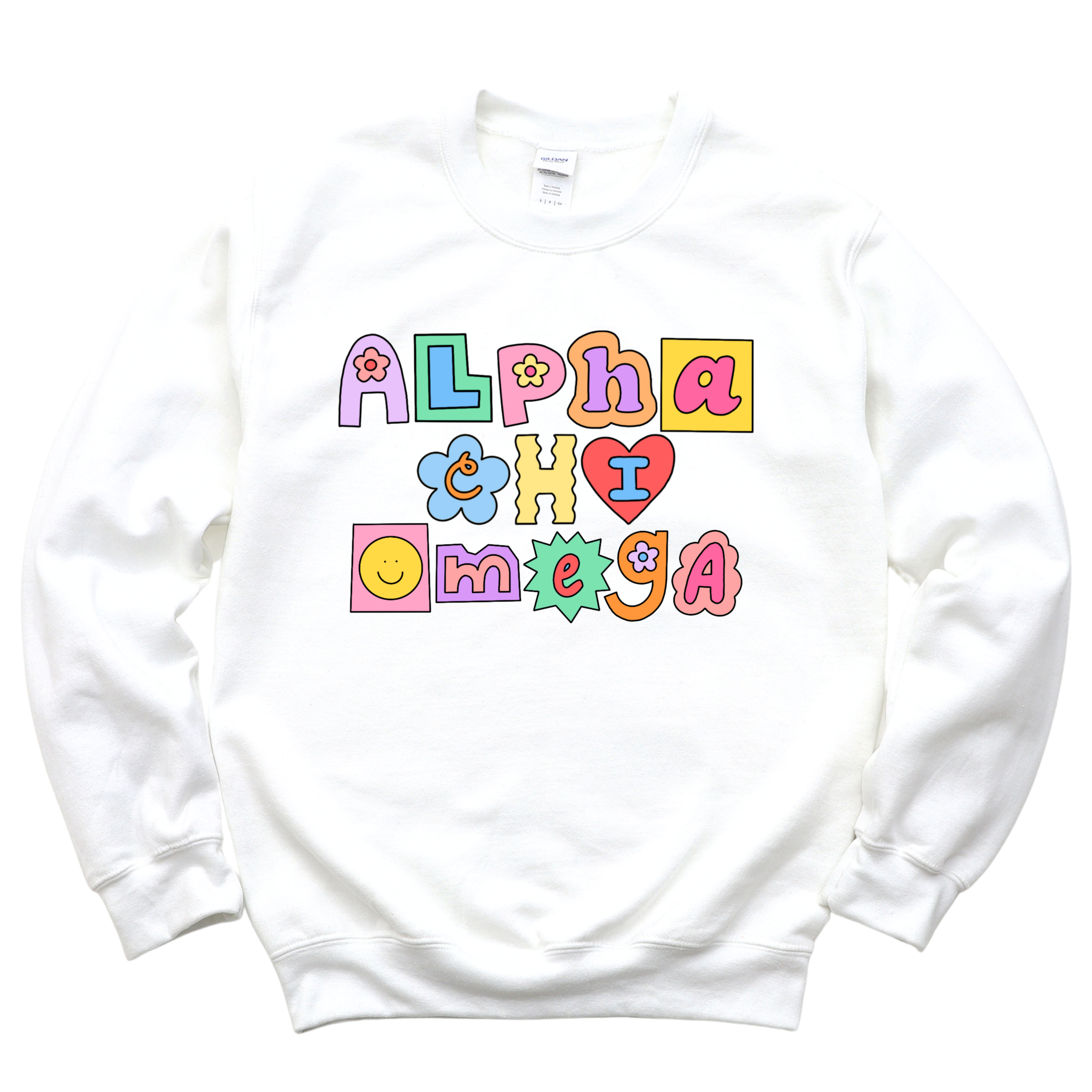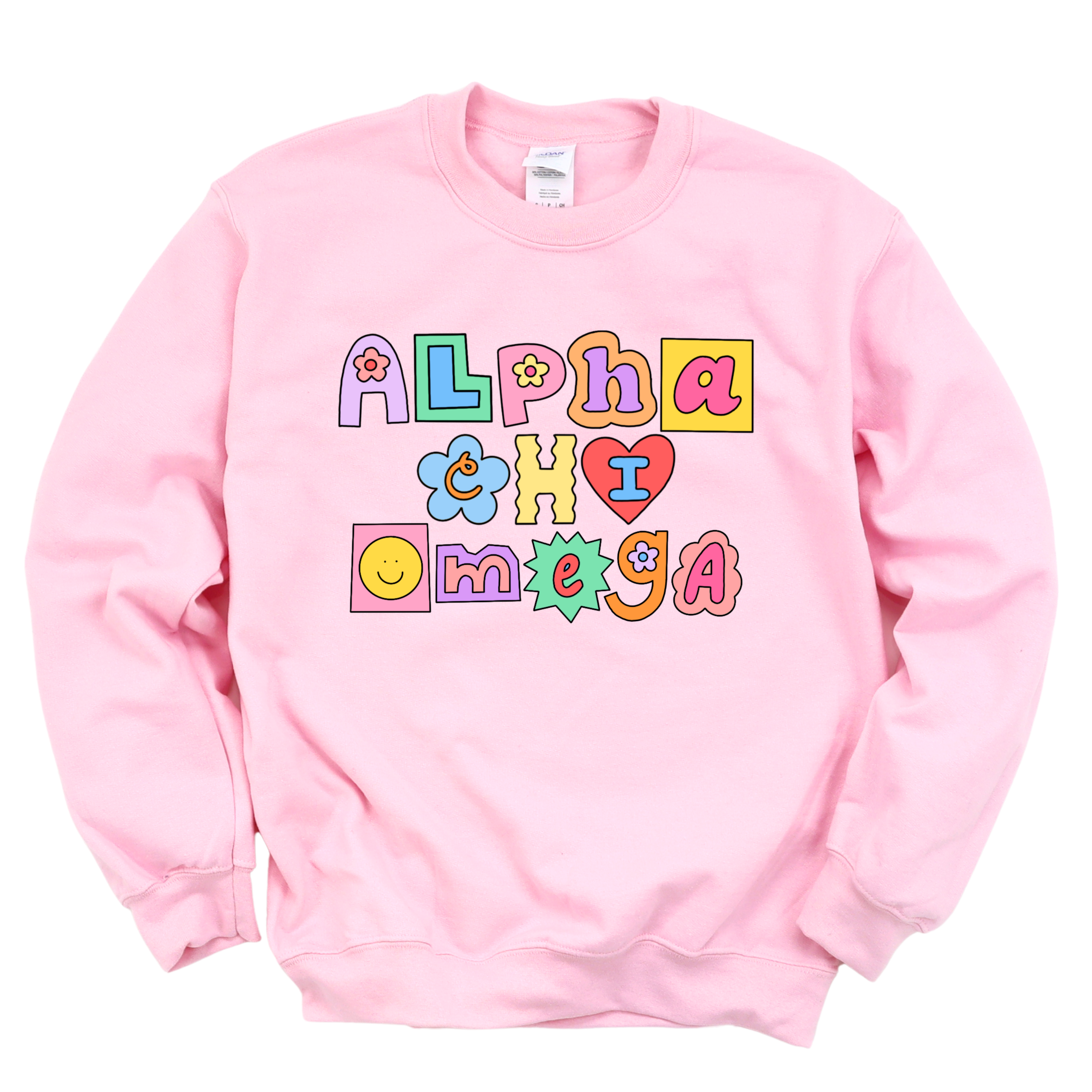 ☆ Bring some color and personality to your wardrobe with this fun block-letter crewneck sweatshirt! Featuring bold letters in vibrant shades, playful shapes, and cheerful accents like hearts and flowers, this cozy sweatshirt is perfect for anyone who loves a bright, uplifting style.