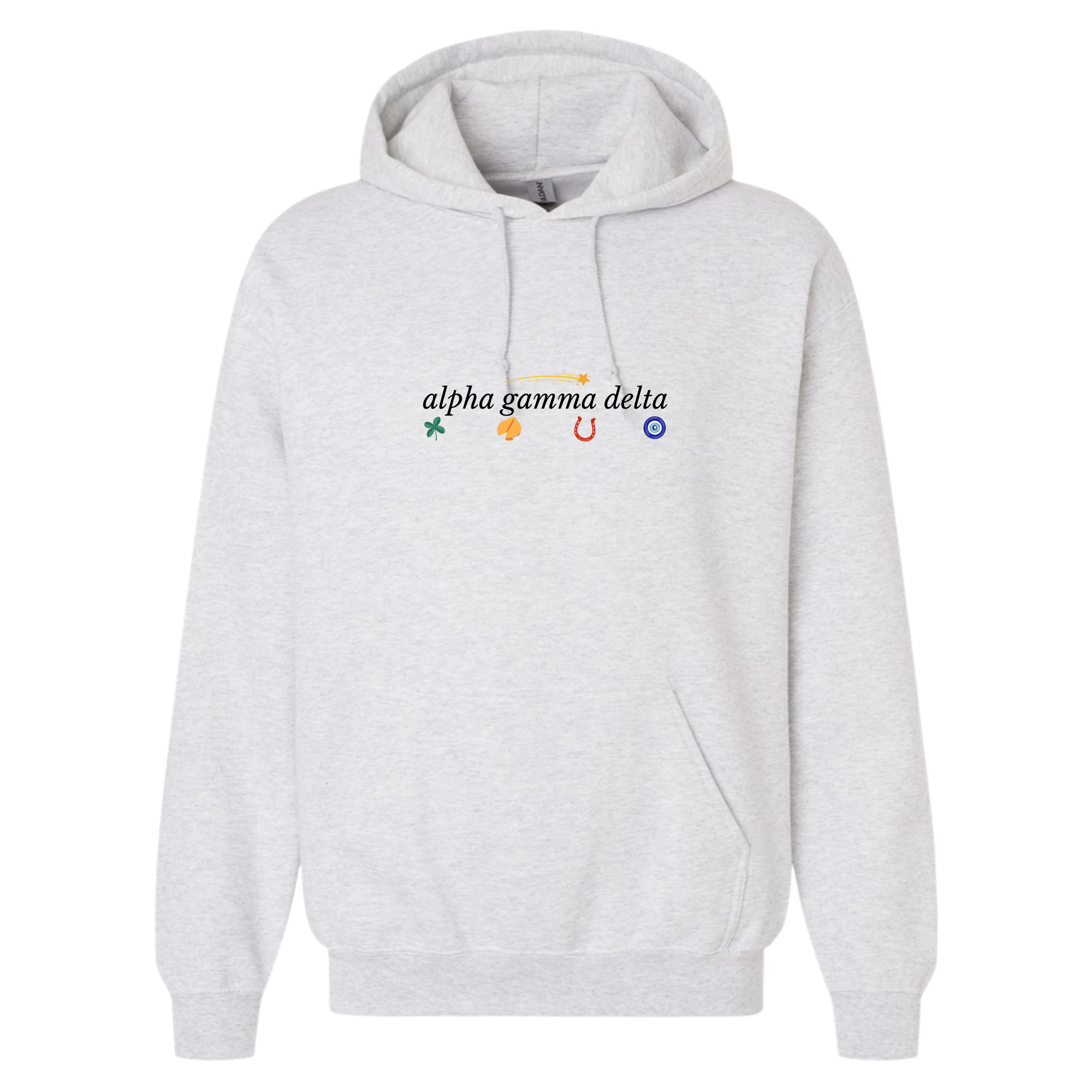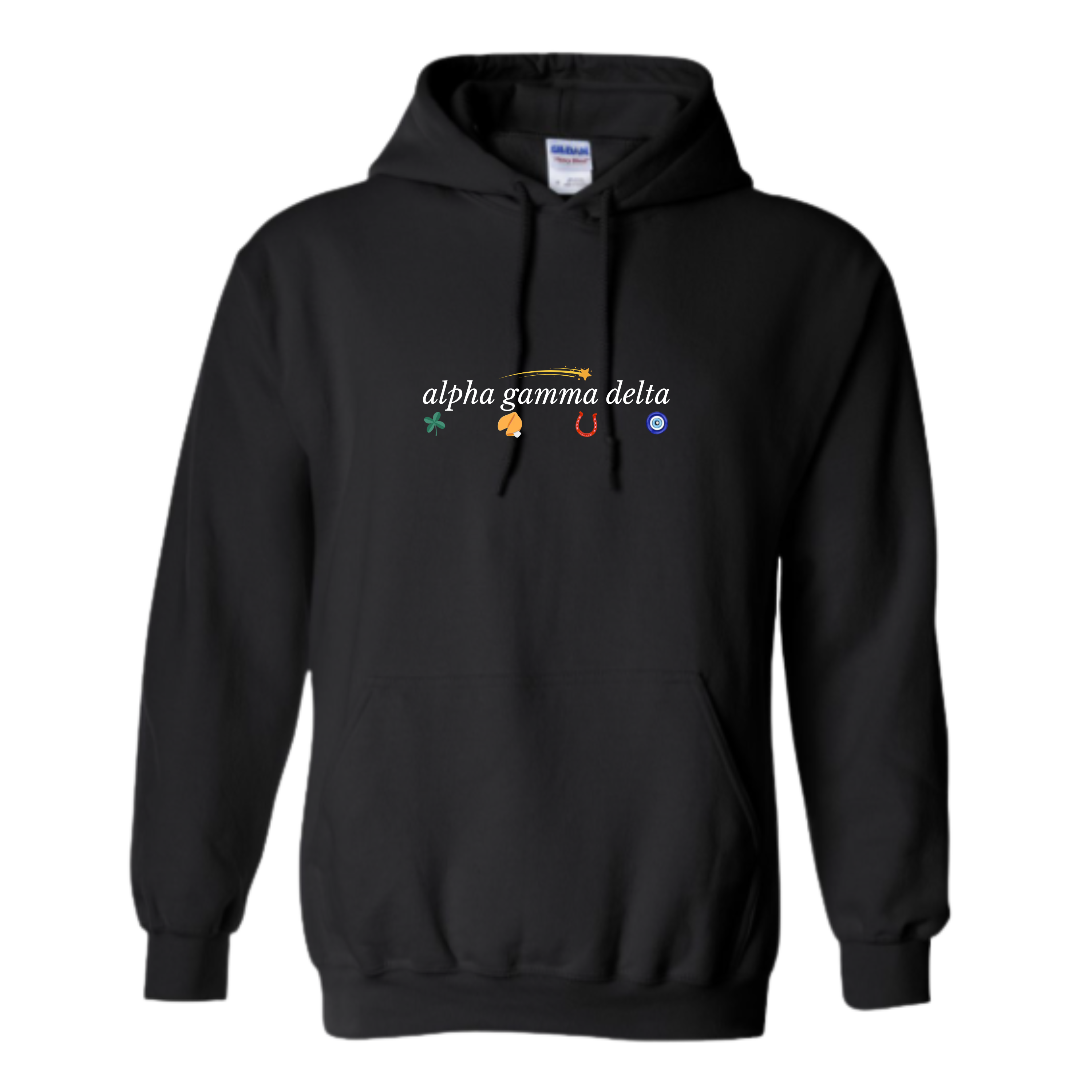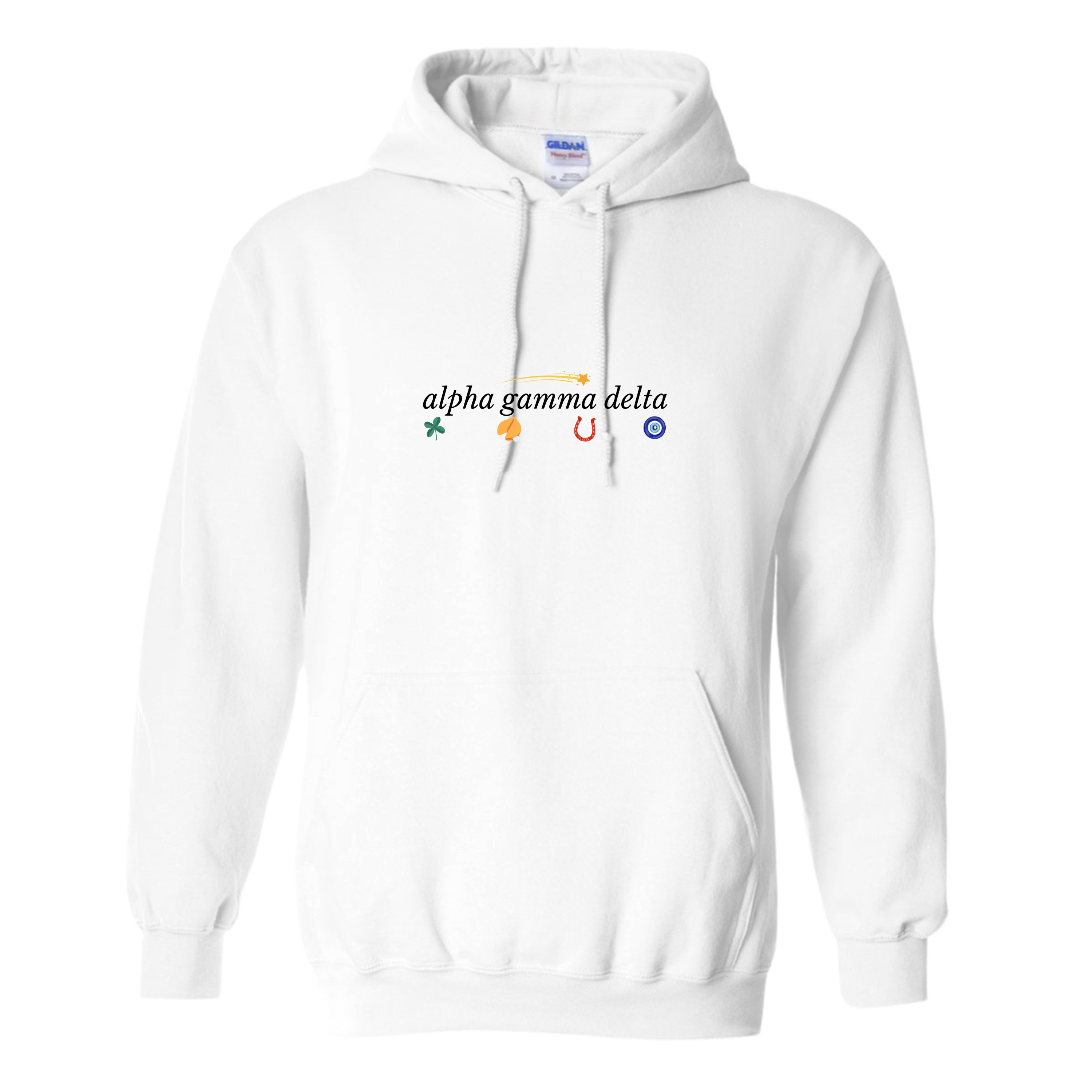 ☆ Get ready to embrace your lucky girl era with the cutest, most charm-filled sorority hoodie of the year! This cozy unisex hoodie features a playful mix of lucky symbols — shooting stars, horseshoes, clovers, evil eye, ladybug, aces, and more — wrapped around the phrase “I’m so lucky to be a [Your Sorority]”. It’s the perfect blend of trendy, girly, and sentimental for every sister.