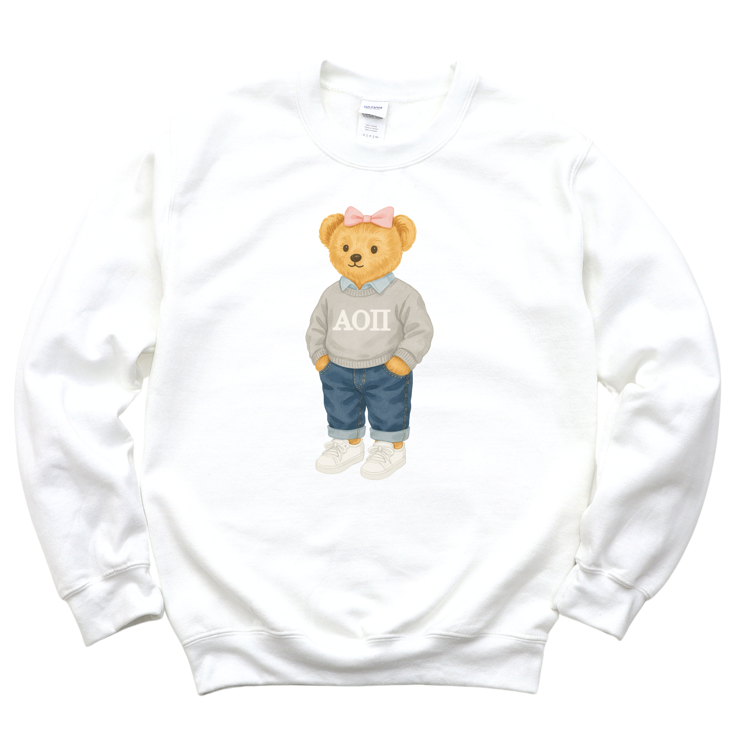 ☆ Meet The Cozy Bear — the sweetest, preppiest sorority sweatshirt you’ll ever own. This design features an adorable dressed-up bear wearing your sorority’s Greek letters on a soft, oversized crewneck. It’s girly, nostalgic, and instantly aesthetic… the perfect mix of cozy + cute for every sister.