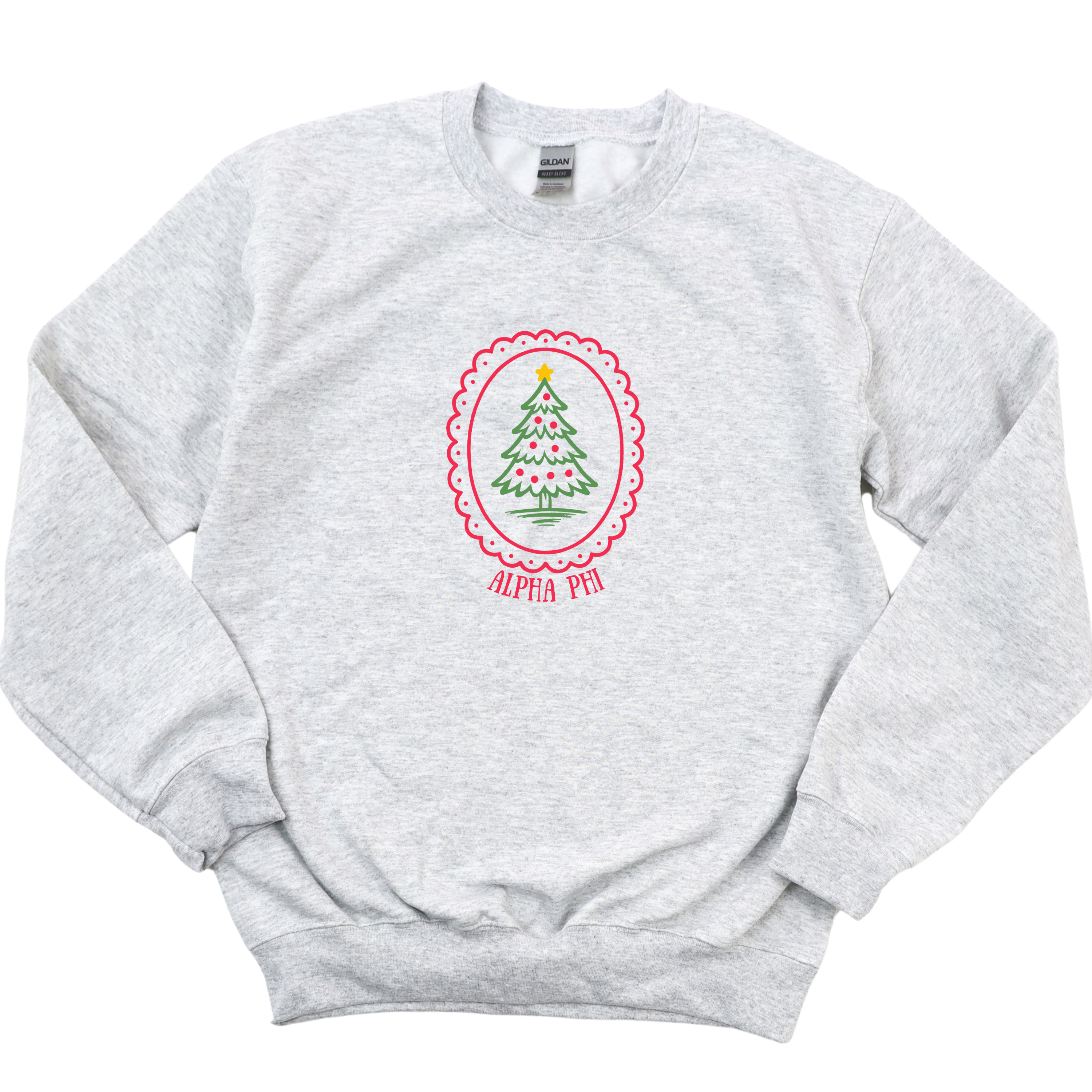 ☆ Celebrate the sweetest season with your sisters in our Merry Sistermas Crewneck Sweatshirt — the perfect holiday must-have for every sorority girl. Featuring an adorable scalloped frame and a whimsical Christmas tree design customized with your chapter name, this sweatshirt brings all the cozy, festive vibes to campus.