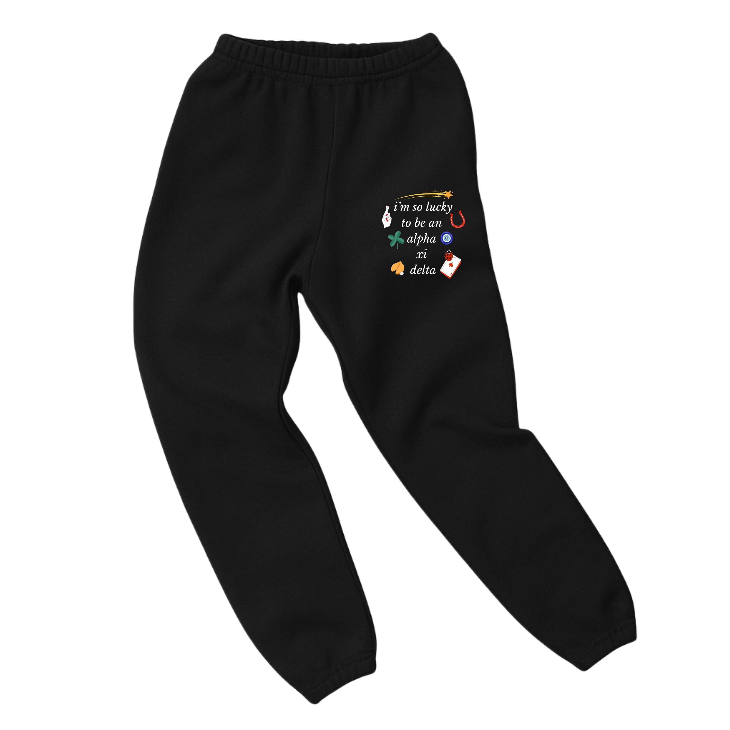 ☆ Meet your new obsession — the Lucky Girl Sweatpants, designed to pair perfectly with the matching Lucky Girl crewneck or hooded sweatshirt. Featuring the adorable “I’m so lucky to be an…” sorority design on the leg, these sweats are the cutest way to show off your chapter pride while staying comfy all day long.