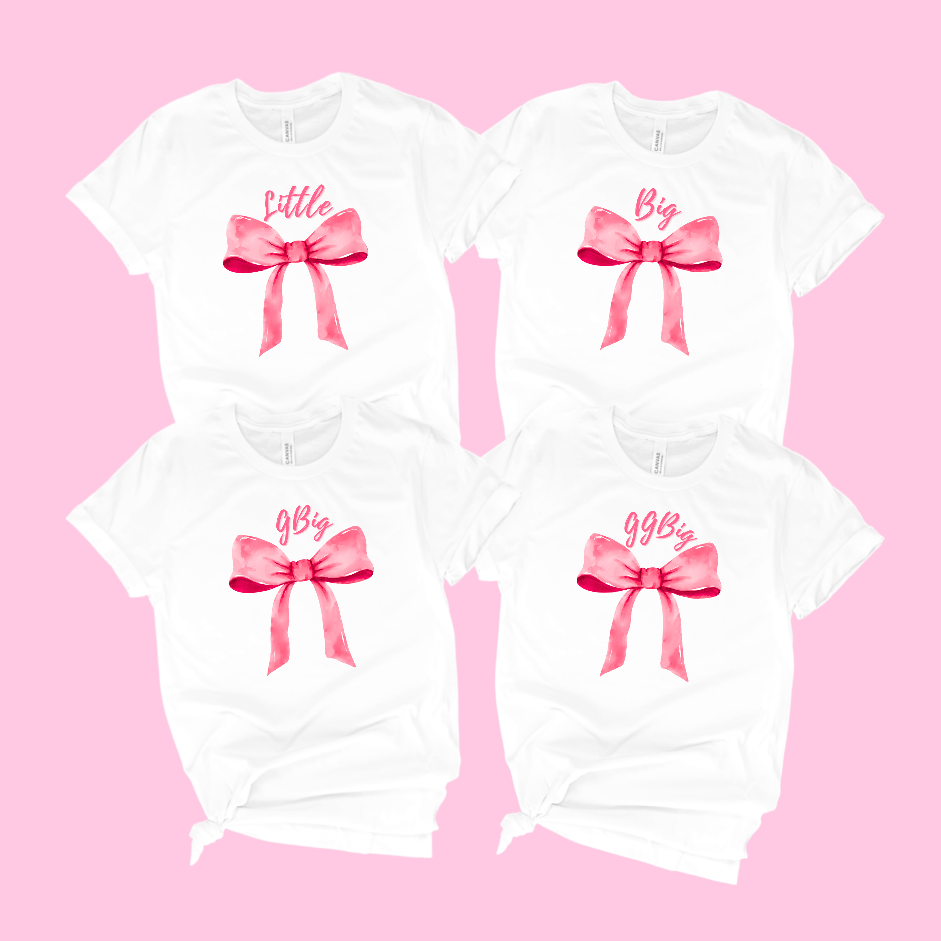 Celebrate your Big Little reveal with these matching sorority bow shirts, designed to make reveal day extra special. Featuring a soft pink watercolor bow paired with “Big,” “Little,” “GBig,” or “GGBig” lettering, these shirts are perfect for Greek life milestones and meaningful sisterhood moments.