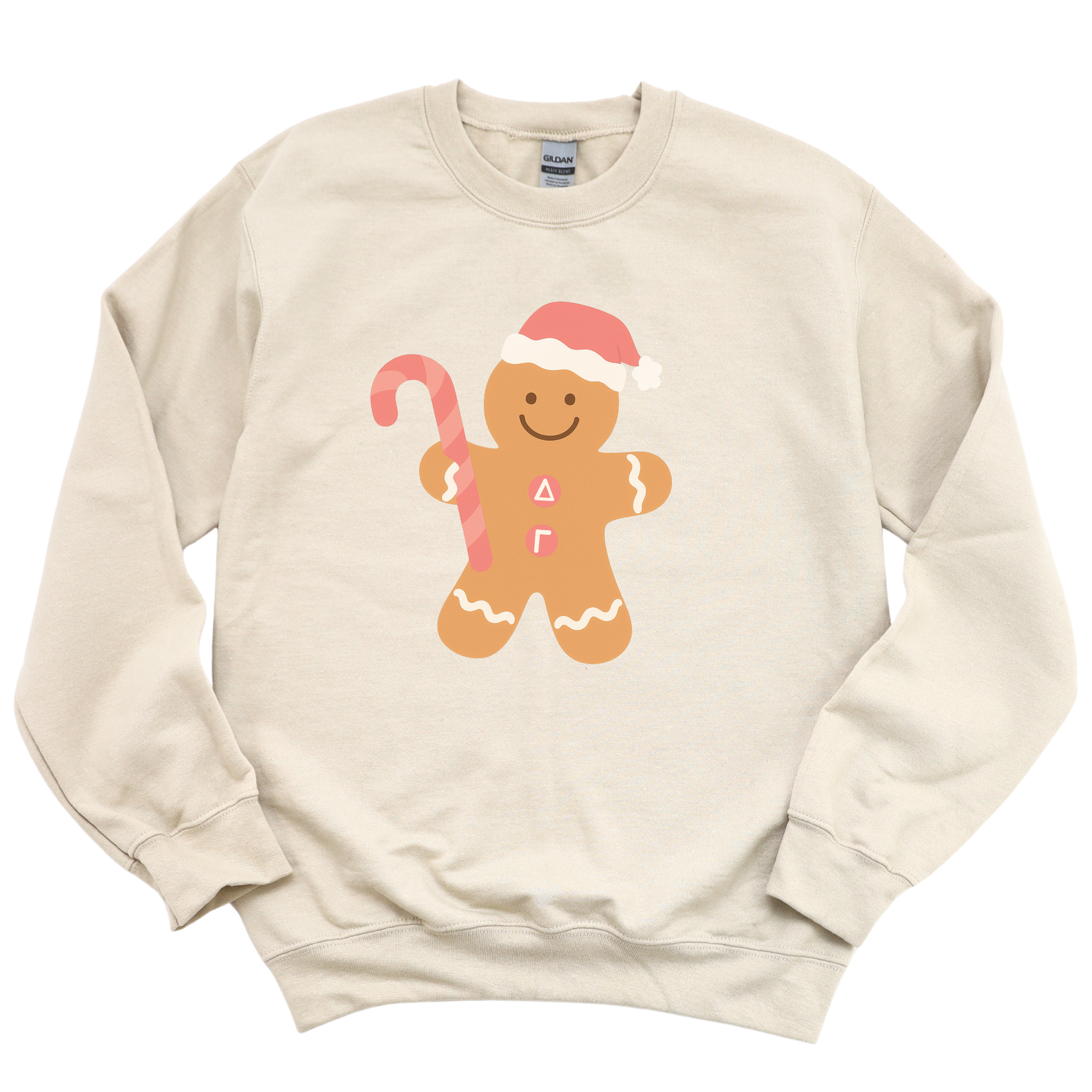 ☆ Meet the sweetest sweatshirt of the season — the Gingerbread Cutie Crewneck! This adorable holiday design features a smiling gingerbread girl holding a candy cane, topped with a Santa hat and customized with your sorority letters for the cutest festive touch.