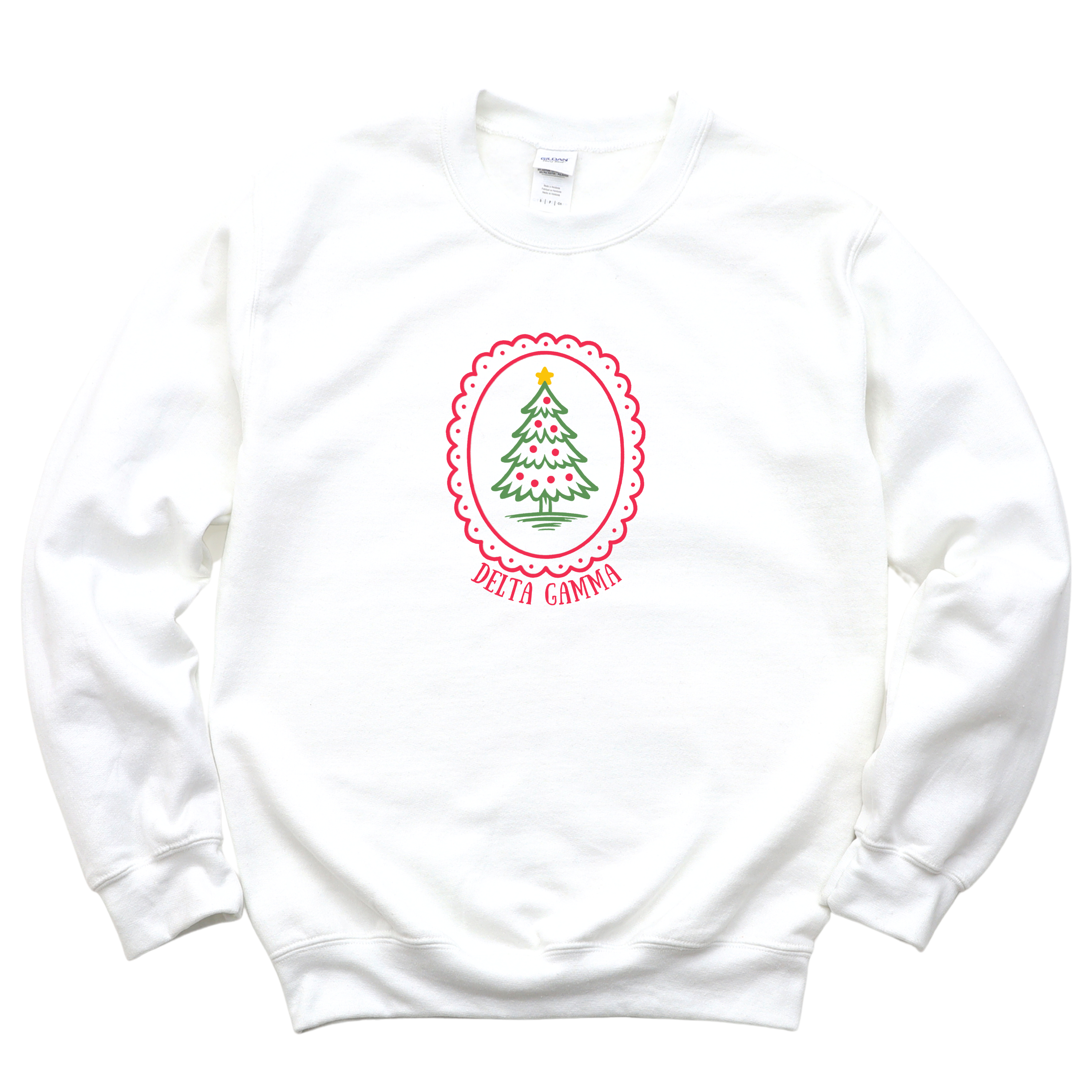 ☆ Celebrate the sweetest season with your sisters in our Merry Sistermas Crewneck Sweatshirt — the perfect holiday must-have for every sorority girl. Featuring an adorable scalloped frame and a whimsical Christmas tree design customized with your chapter name, this sweatshirt brings all the cozy, festive vibes to campus.
