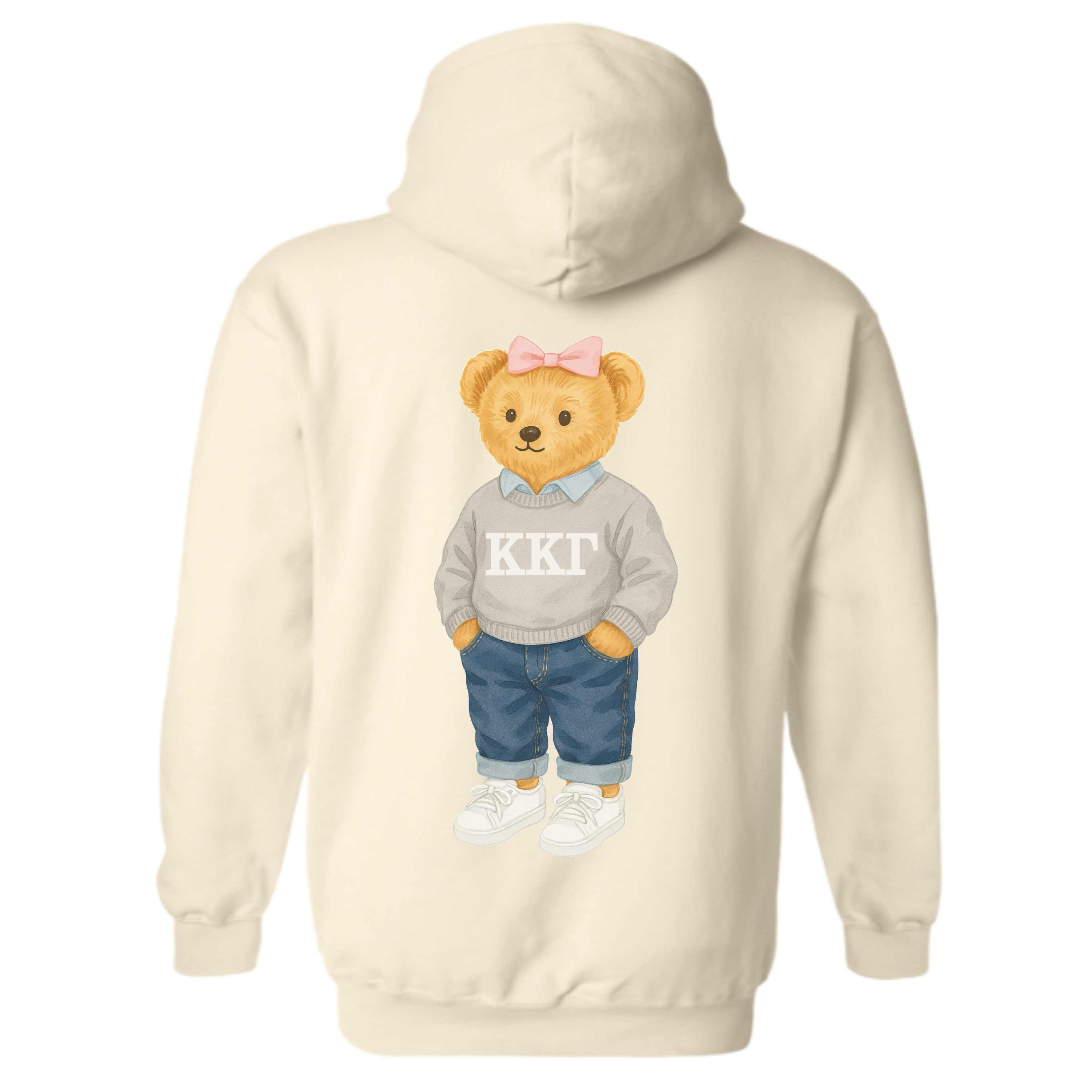 ☆ Say hello to The Cozy Bear hoodie — the cutest way to stay warm and show off your sorority pride. This premium unisex hoodie features a mini Cozy Bear graphic on the front right chest and a full-size Cozy Bear design on the back, complete with your sorority’s Greek letters on the bear’s sweater. It’s trendy, nostalgic, and effortlessly adorable.