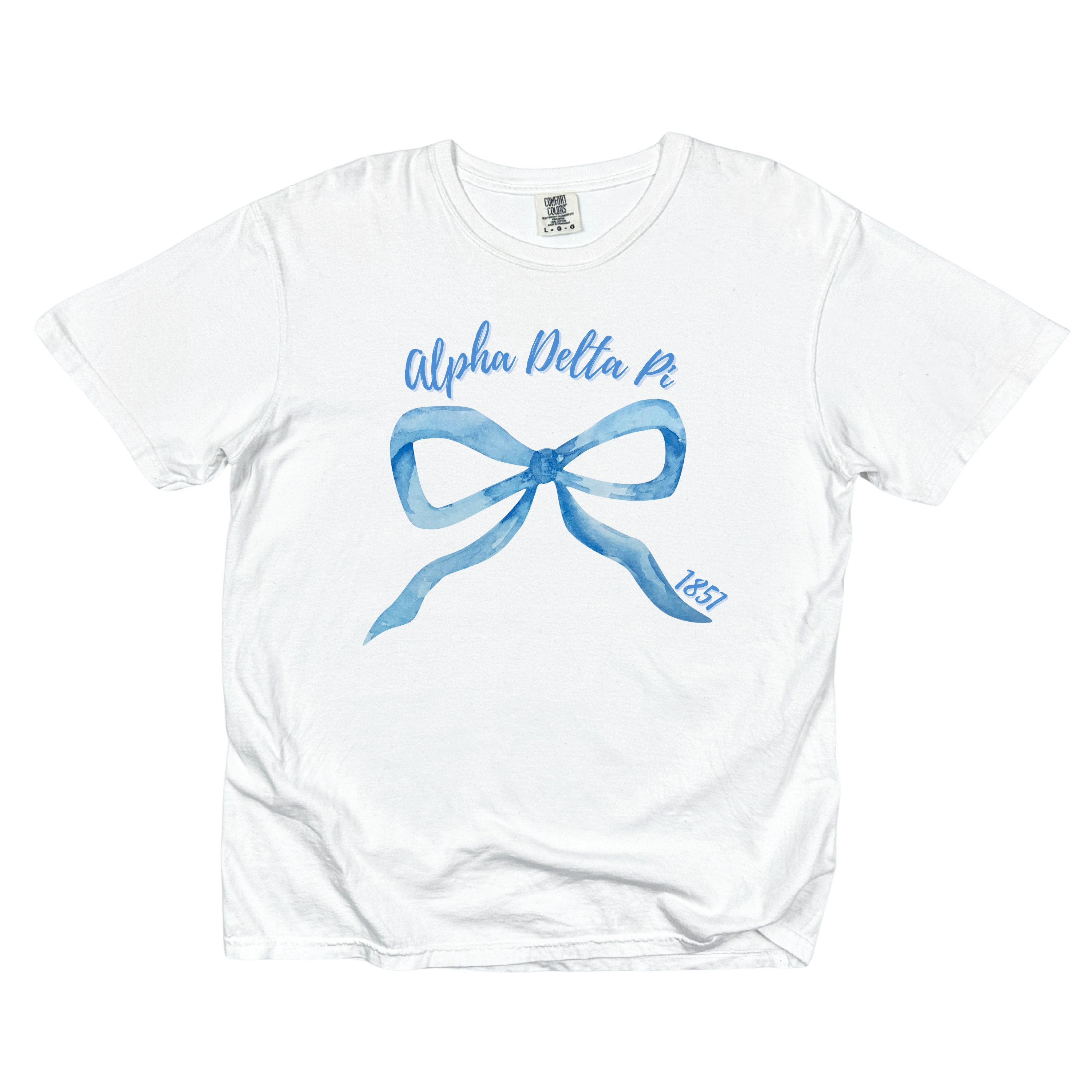 Classic, sweet, and effortlessly wearable—the ADPi Blue Bow Tee is a timeless staple that celebrates Alpha Delta Pi sisterhood with a delicate, feminine touch. Featuring a watercolor-style blue bow paired with elegant Alpha Delta Pi script and 1851, this design blends tradition with a modern, everyday look.