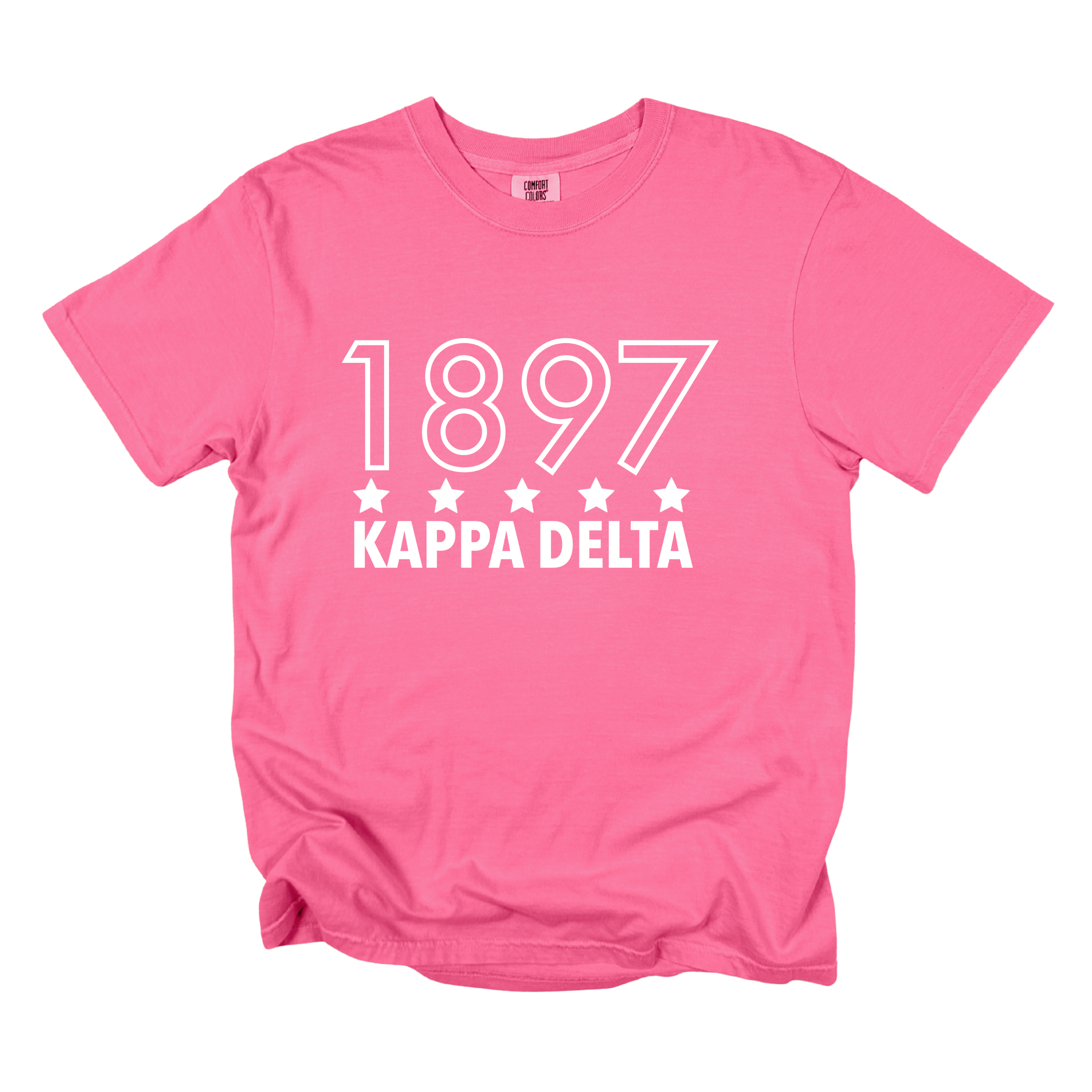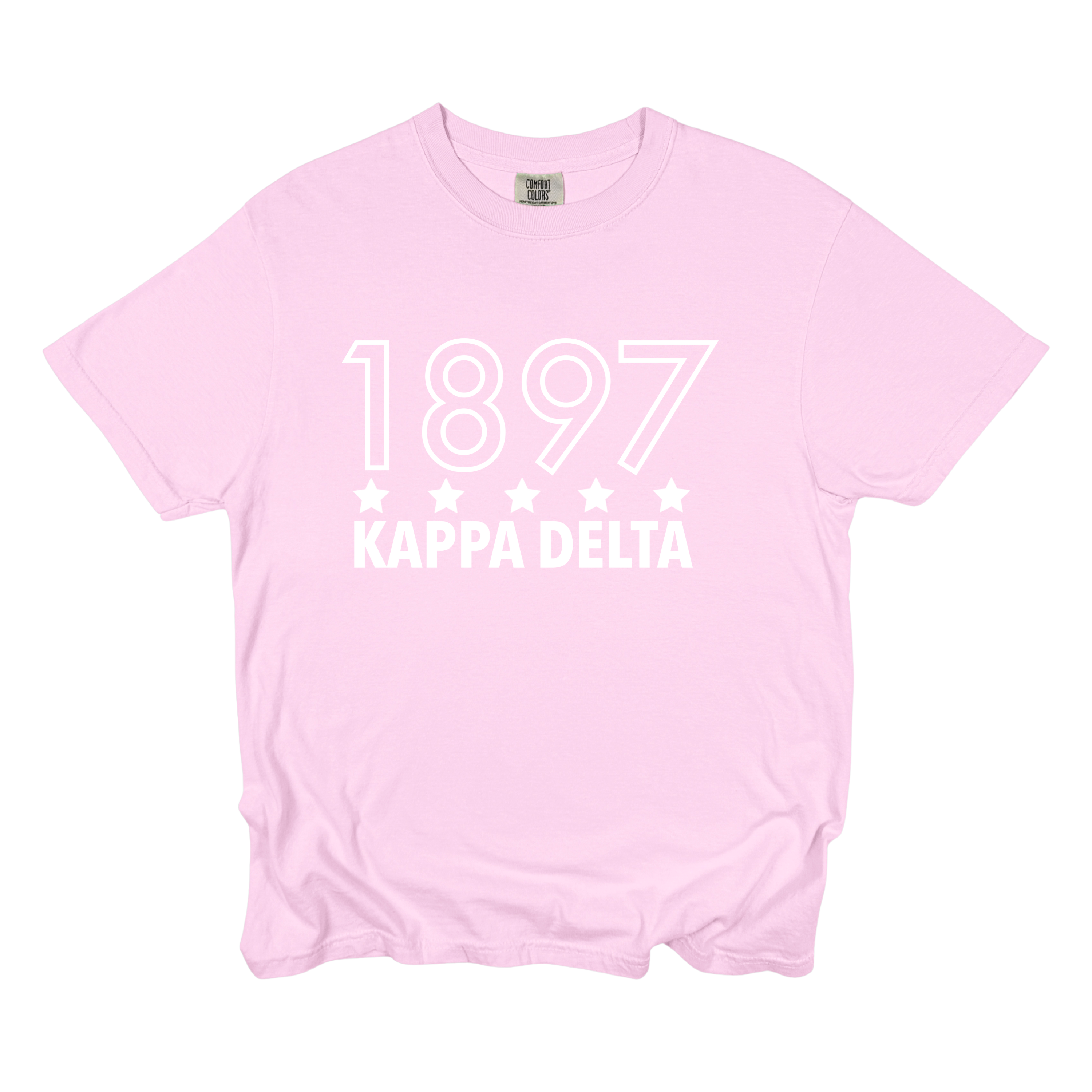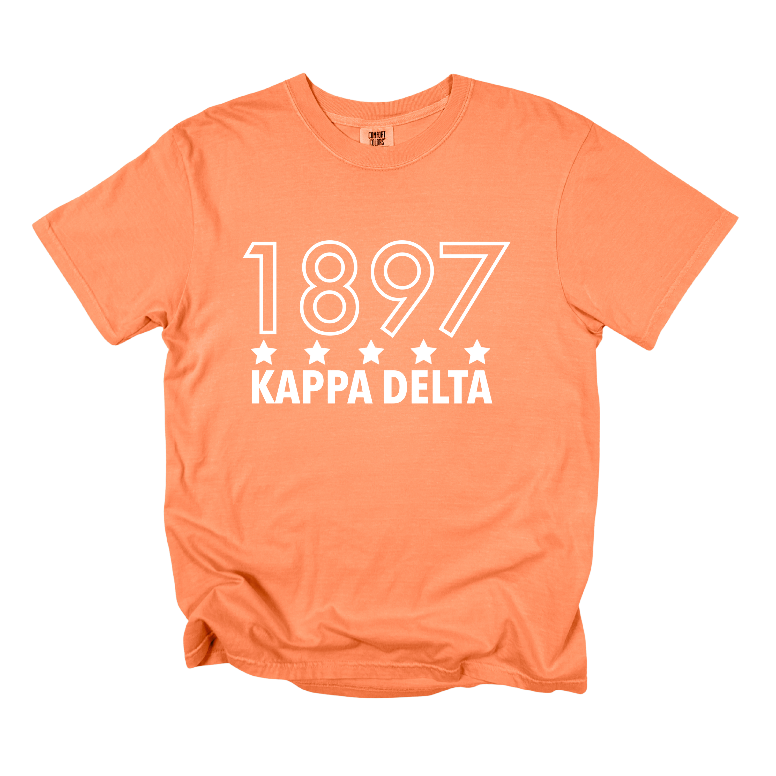 Level up your sorority style with this classic Comfort Colors tee – loved for its ultra-soft, lived-in feel and relaxed fit. Perfect for everyday wear or chapter events, this design features bold, retro-inspired typography paired with standout star details for a timeless, collegiate vibe.