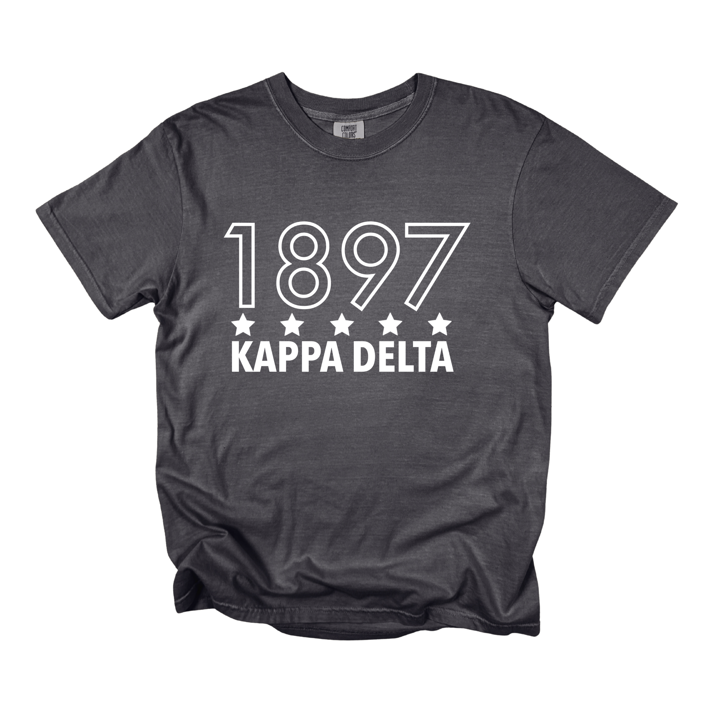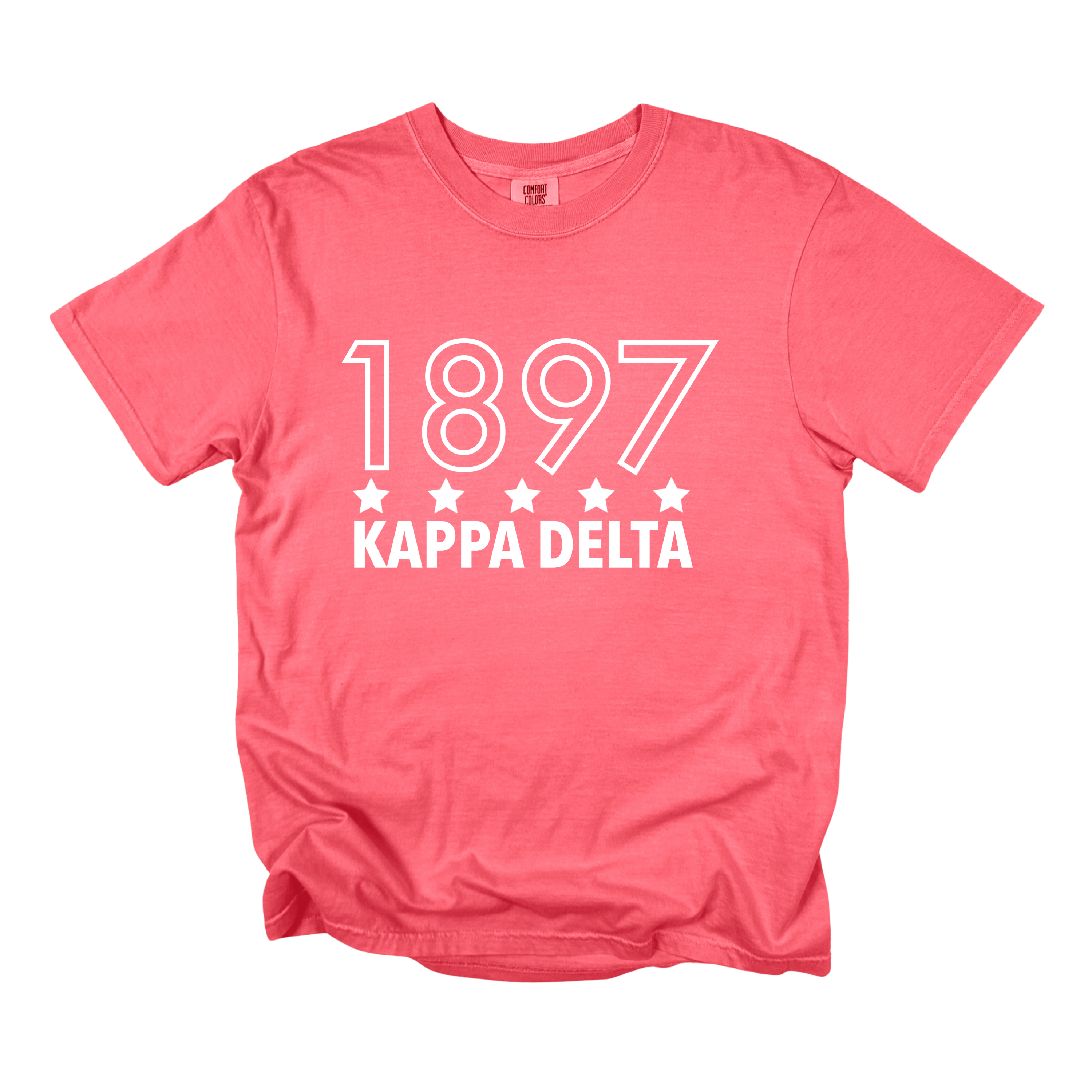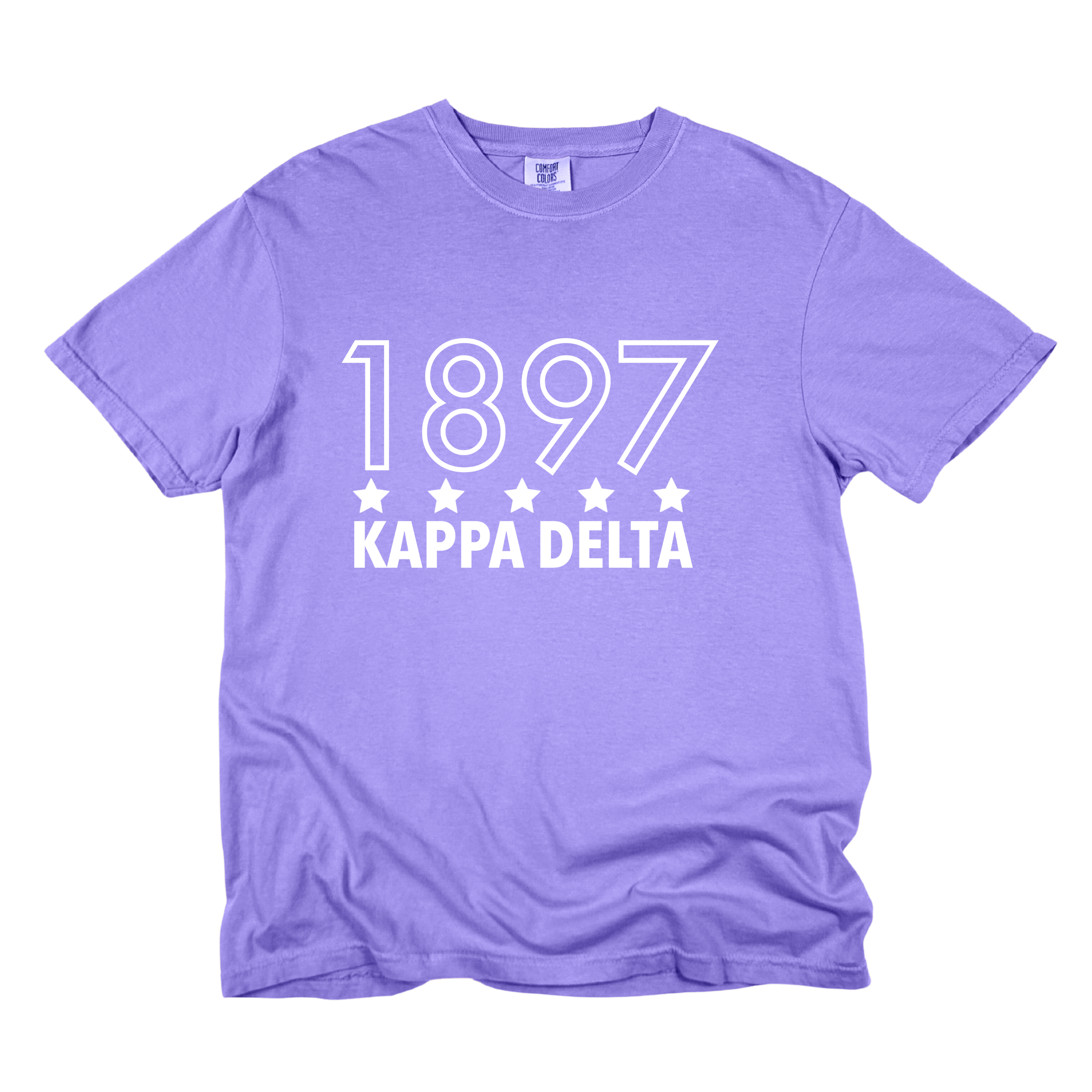 Level up your sorority style with this classic Comfort Colors tee – loved for its ultra-soft, lived-in feel and relaxed fit. Perfect for everyday wear or chapter events, this design features bold, retro-inspired typography paired with standout star details for a timeless, collegiate vibe.