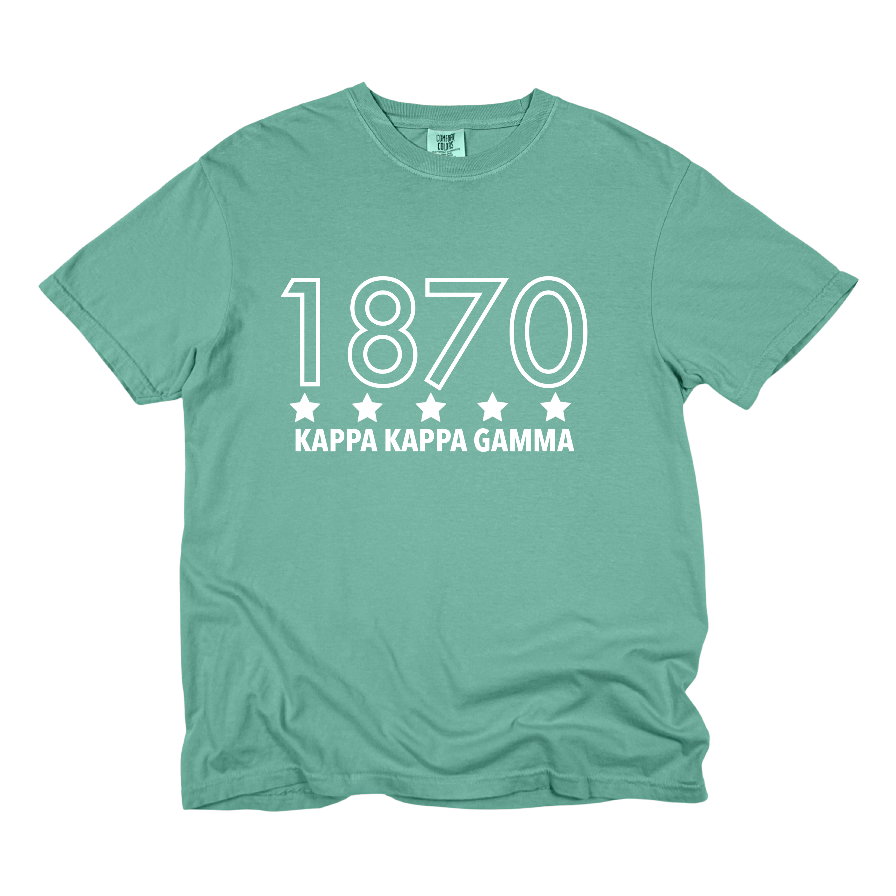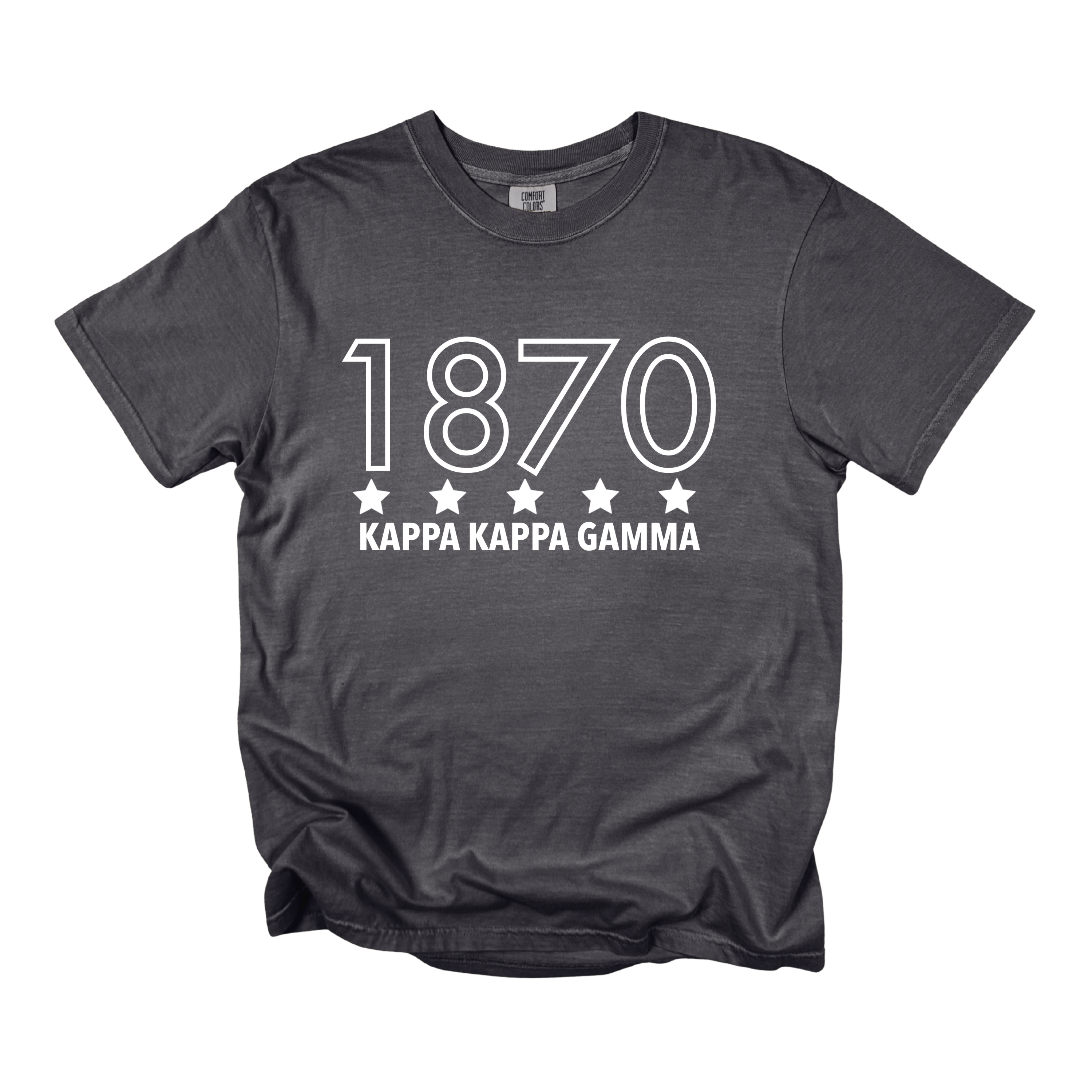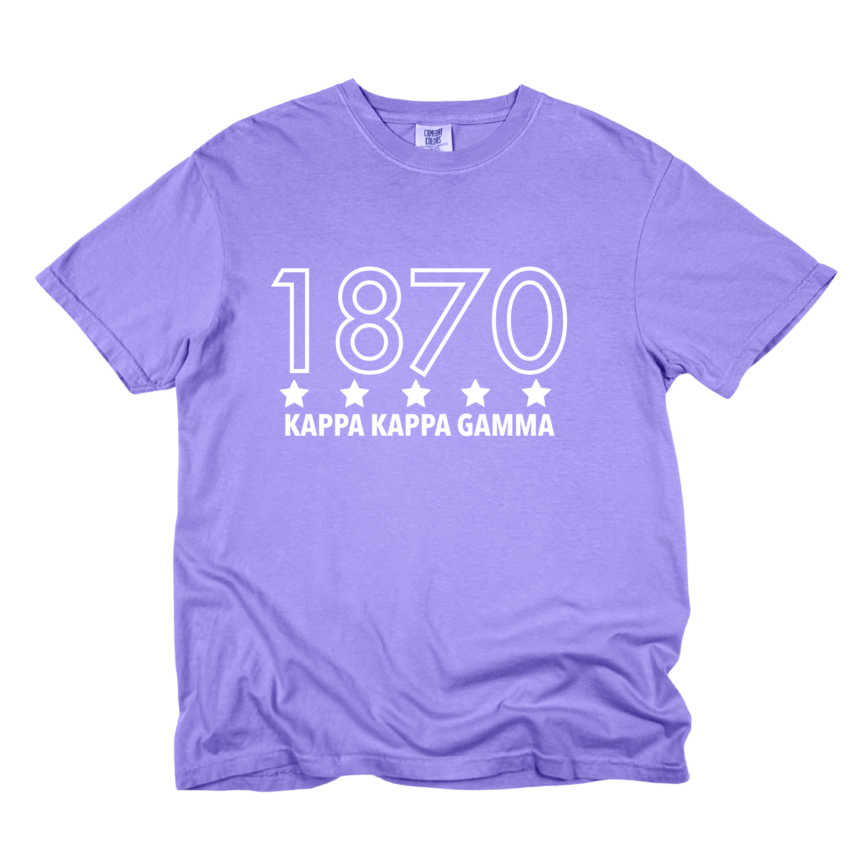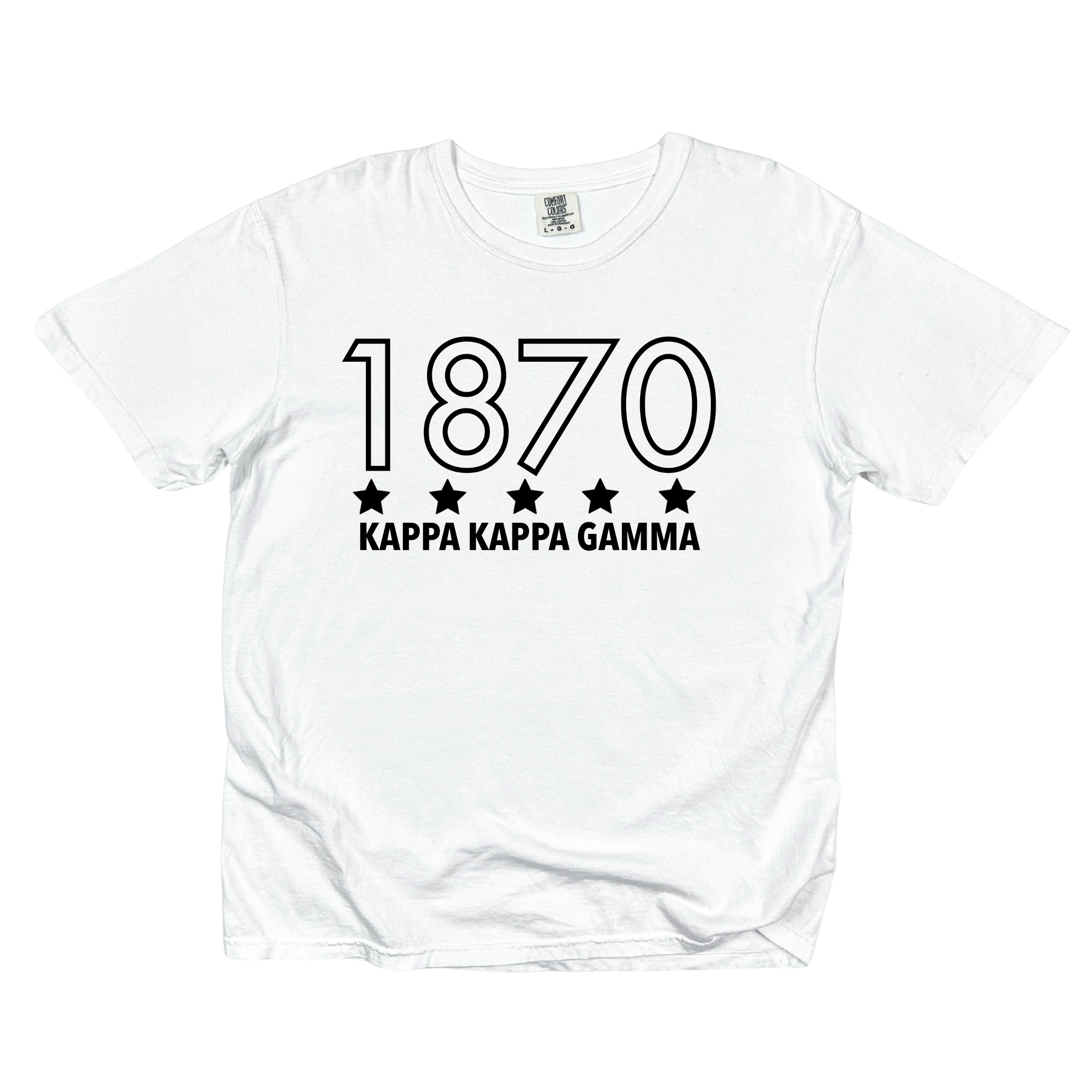 Level up your sorority style with this classic Comfort Colors tee – loved for its ultra-soft, lived-in feel and relaxed fit. Perfect for everyday wear or chapter events, this design features bold, retro-inspired typography paired with standout star details for a timeless, collegiate vibe.