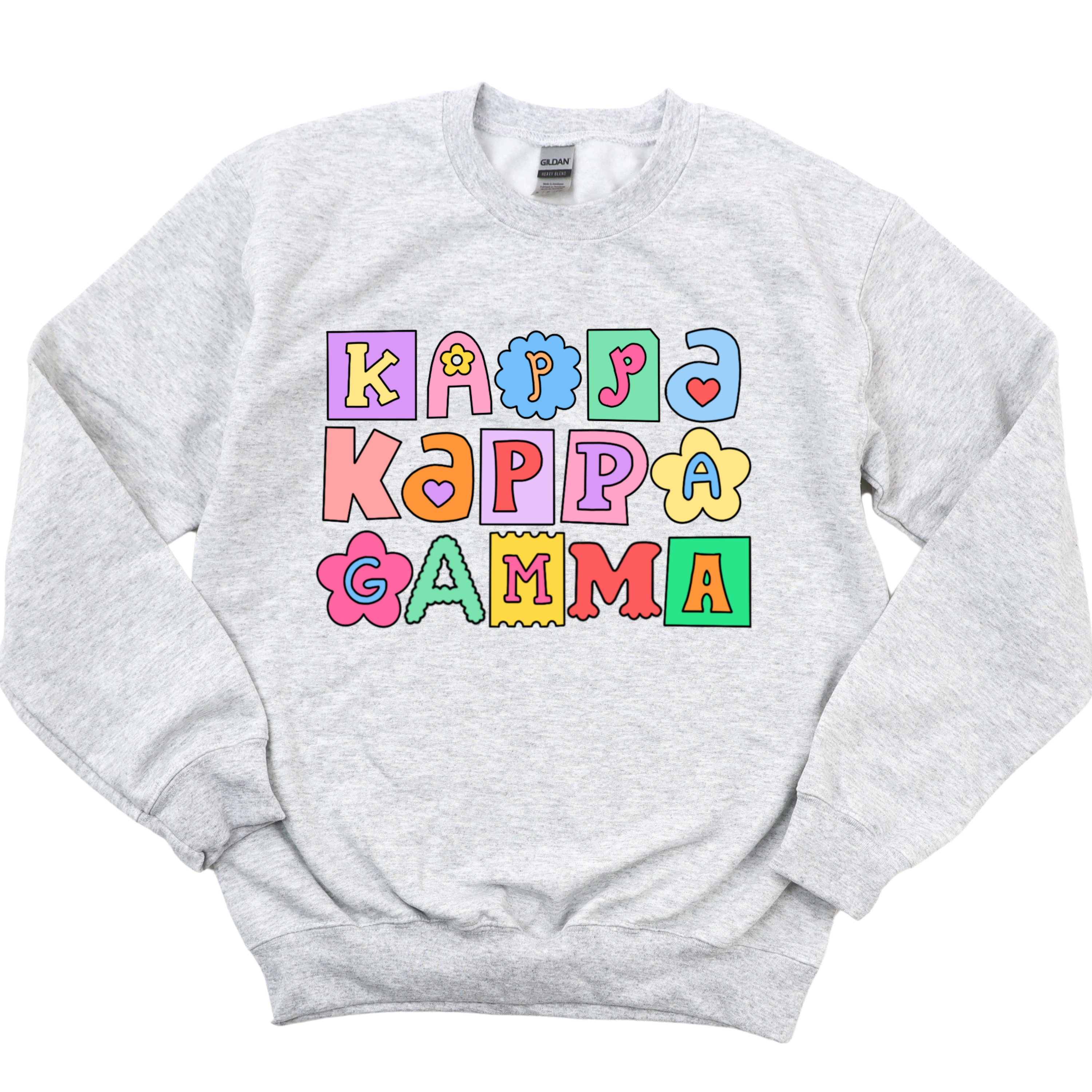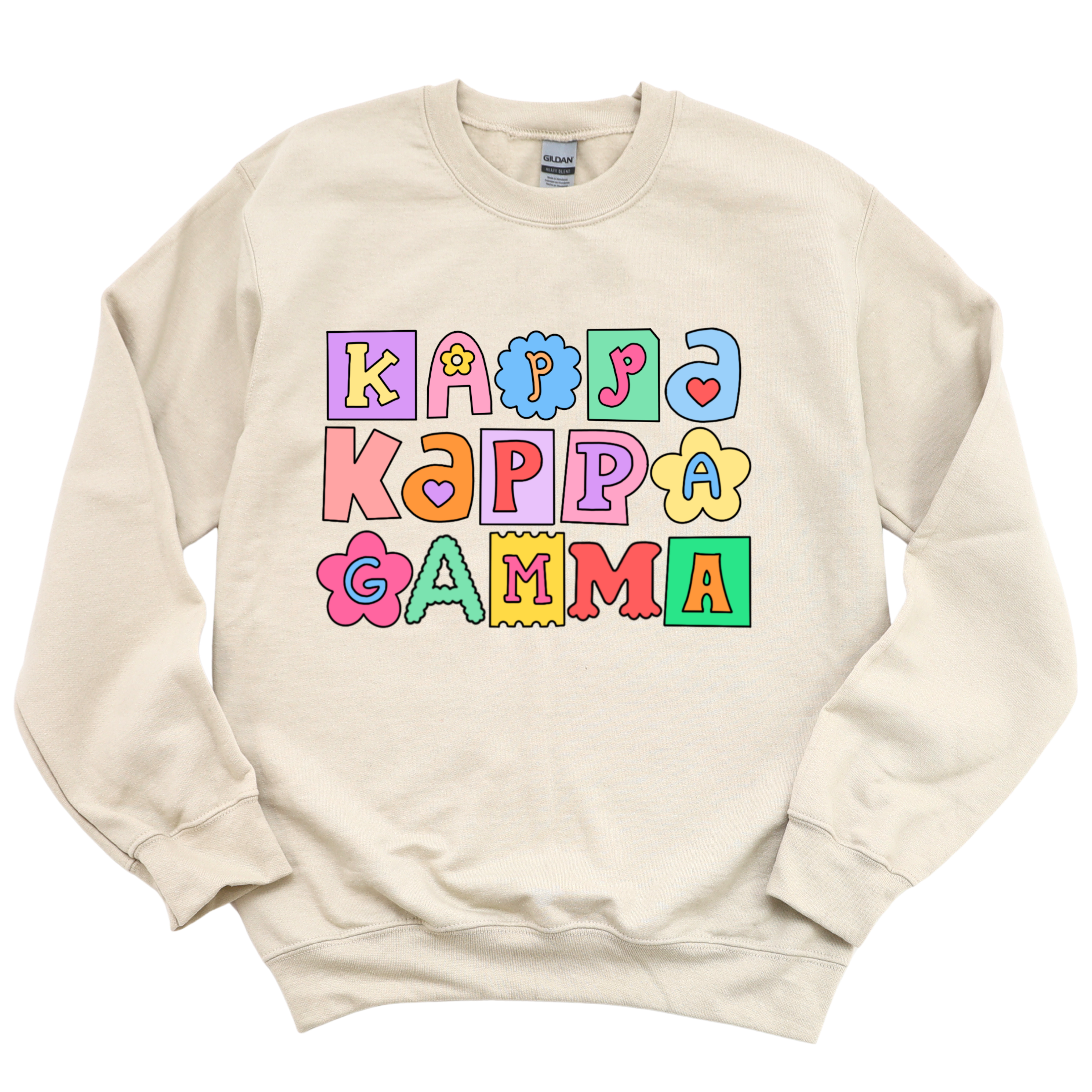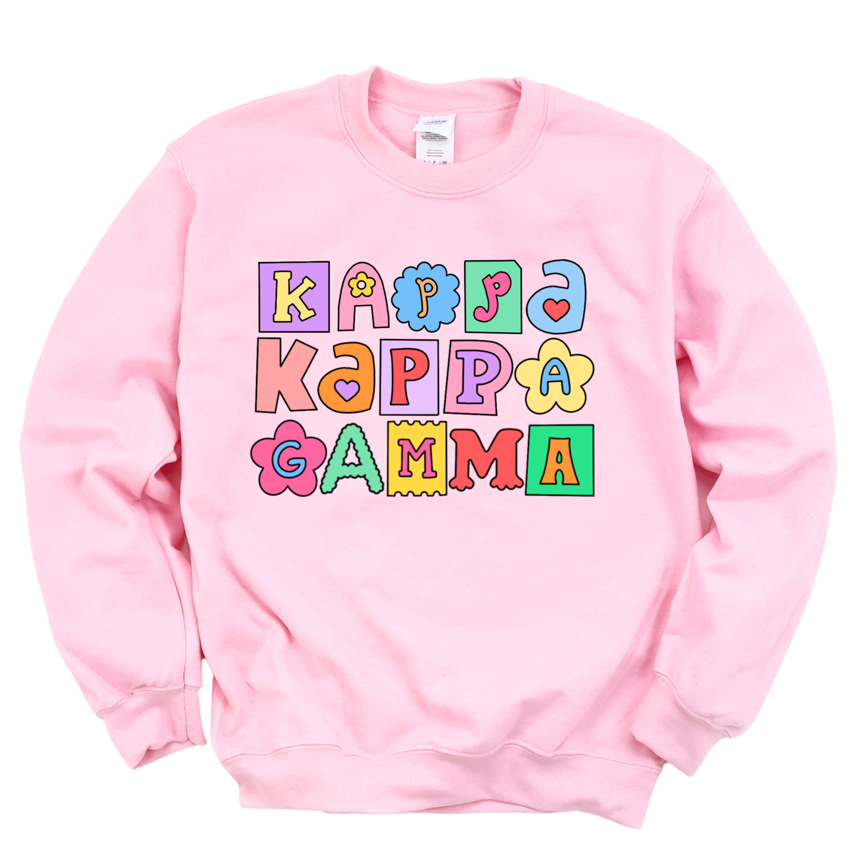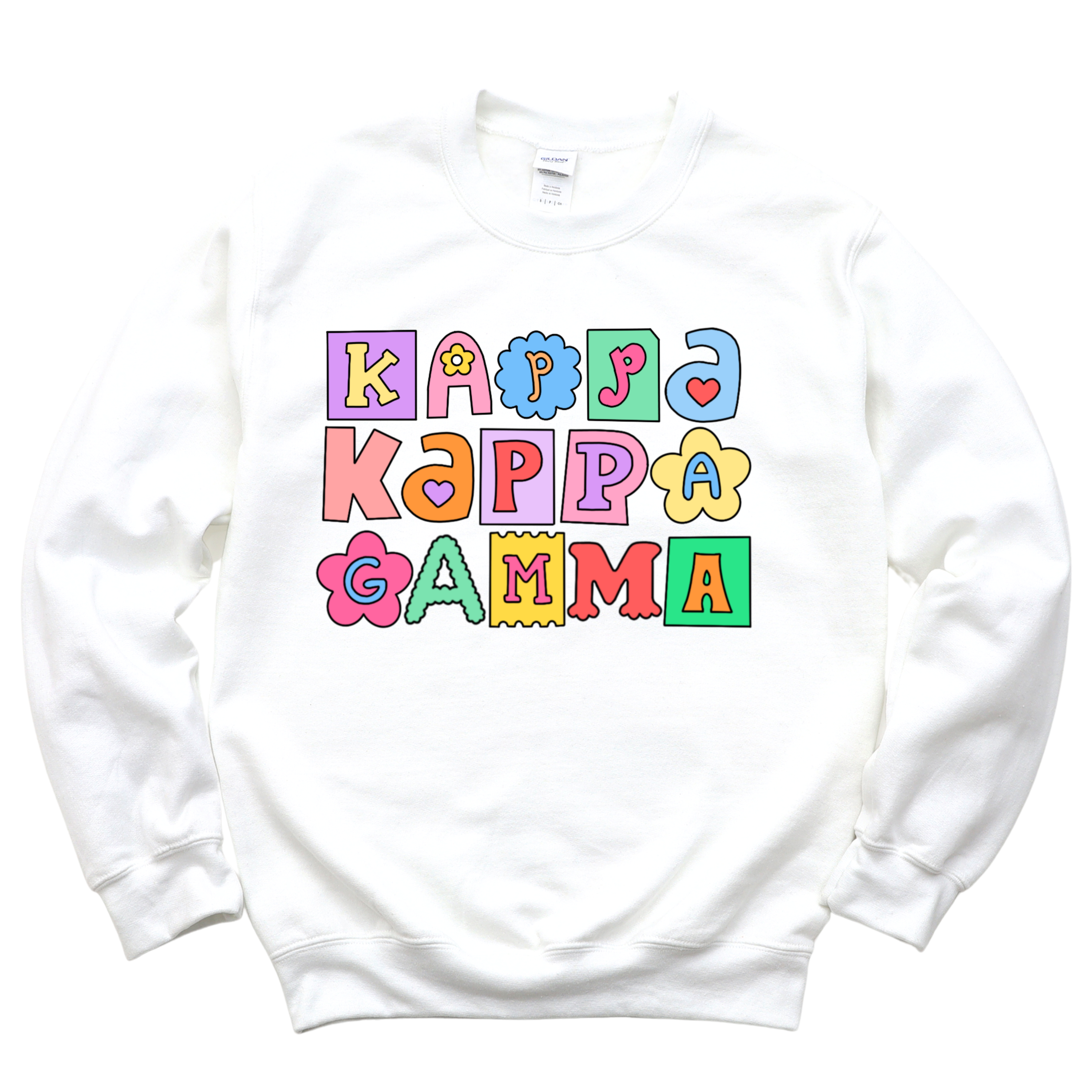 ☆ Bring some color and personality to your wardrobe with this fun block-letter crewneck sweatshirt! Featuring bold letters in vibrant shades, playful shapes, and cheerful accents like hearts and flowers, this cozy sweatshirt is perfect for anyone who loves a bright, uplifting style.