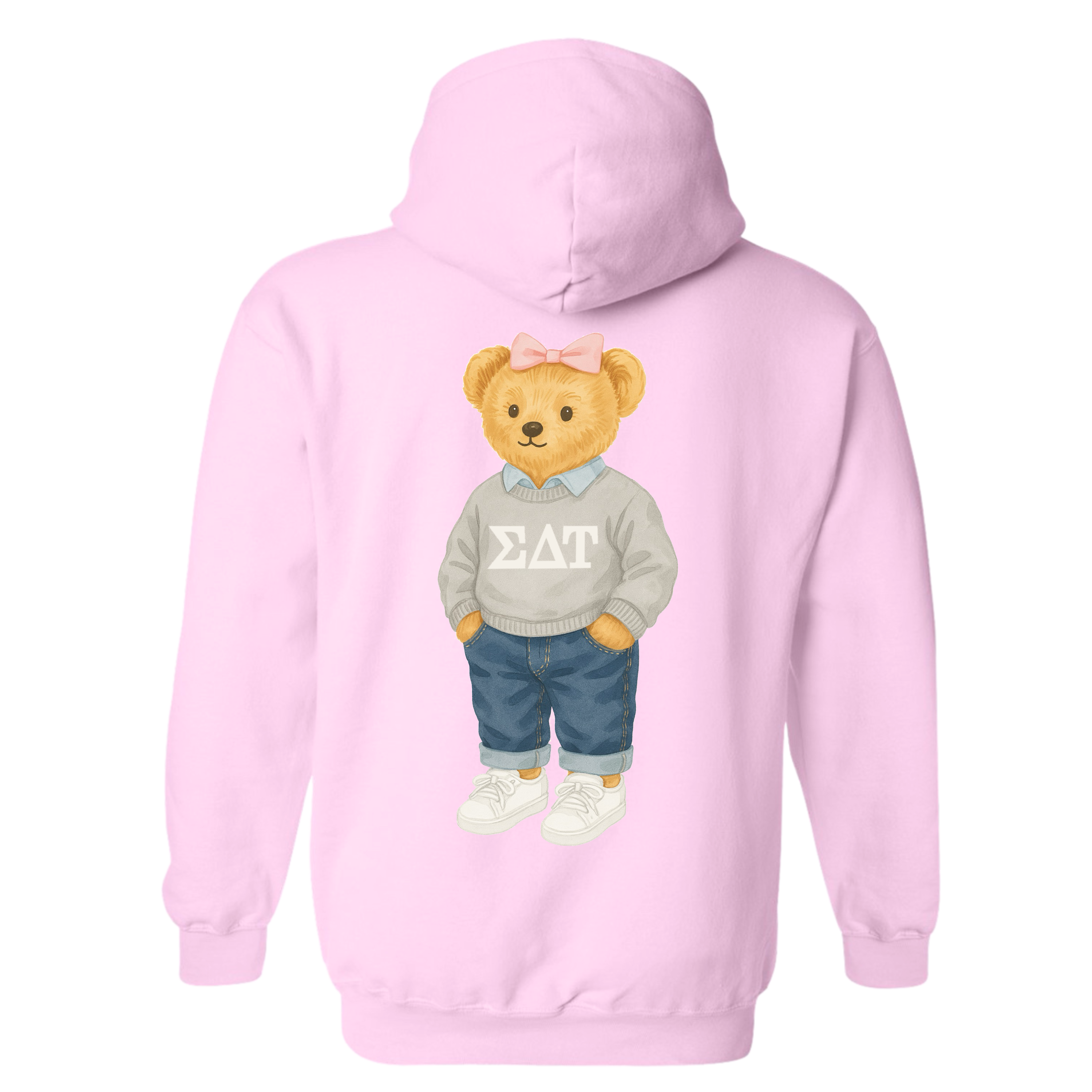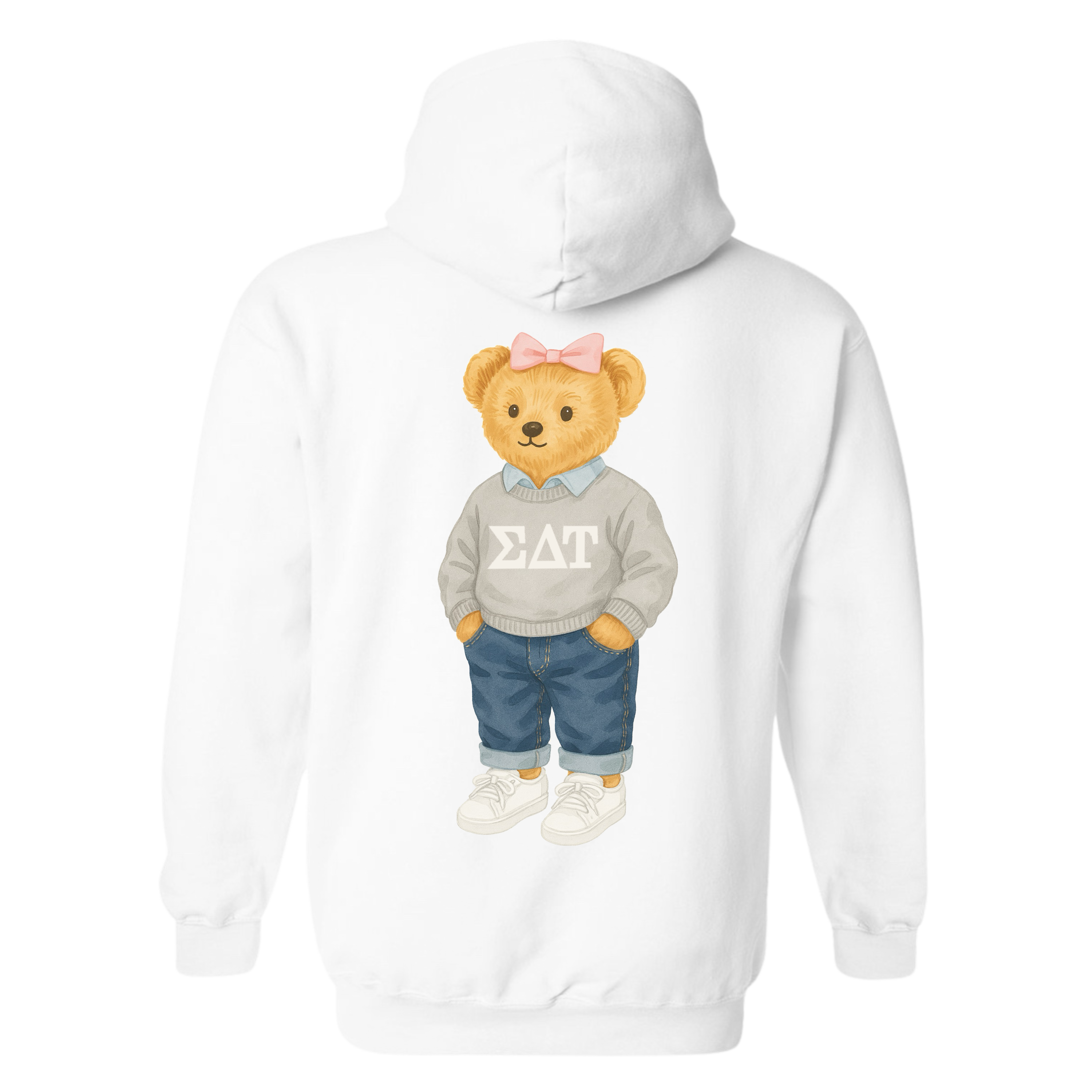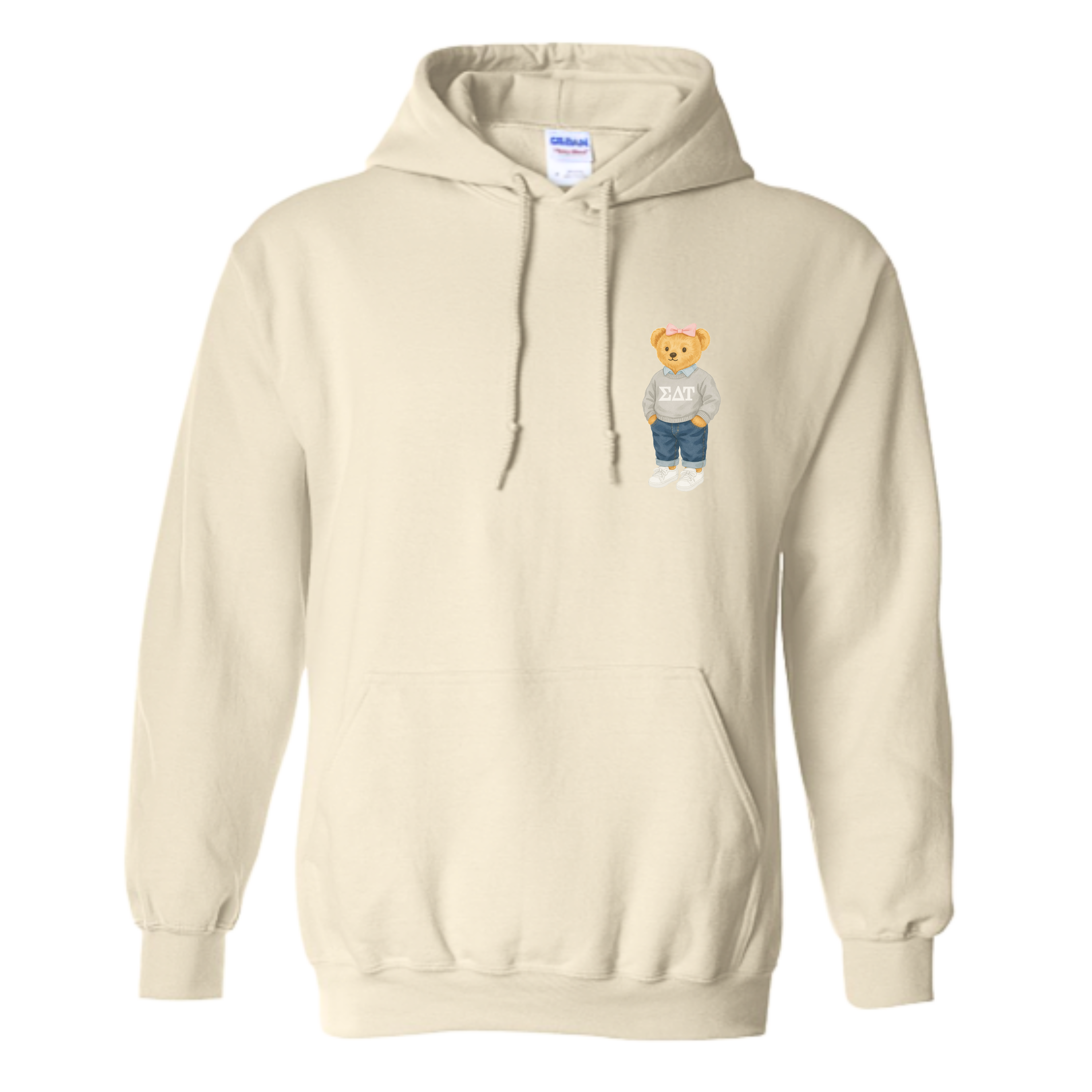☆ Say hello to The Cozy Bear hoodie — the cutest way to stay warm and show off your sorority pride. This premium unisex hoodie features a mini Cozy Bear graphic on the front right chest and a full-size Cozy Bear design on the back, complete with your sorority’s Greek letters on the bear’s sweater. It’s trendy, nostalgic, and effortlessly adorable.