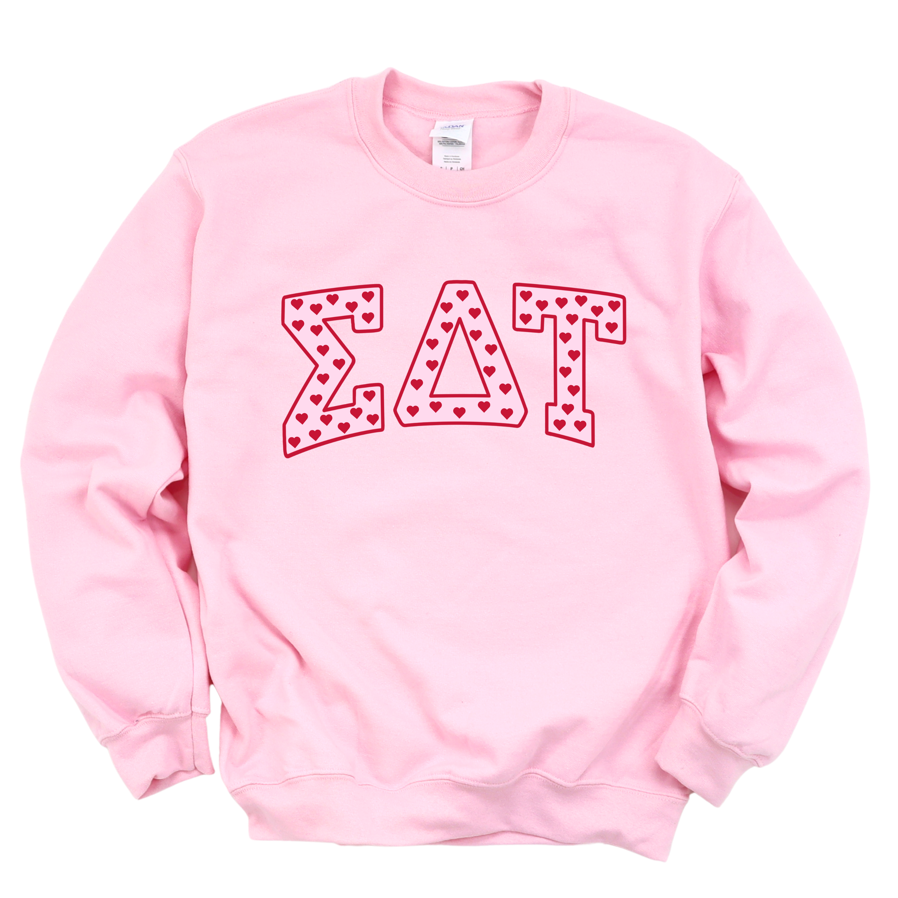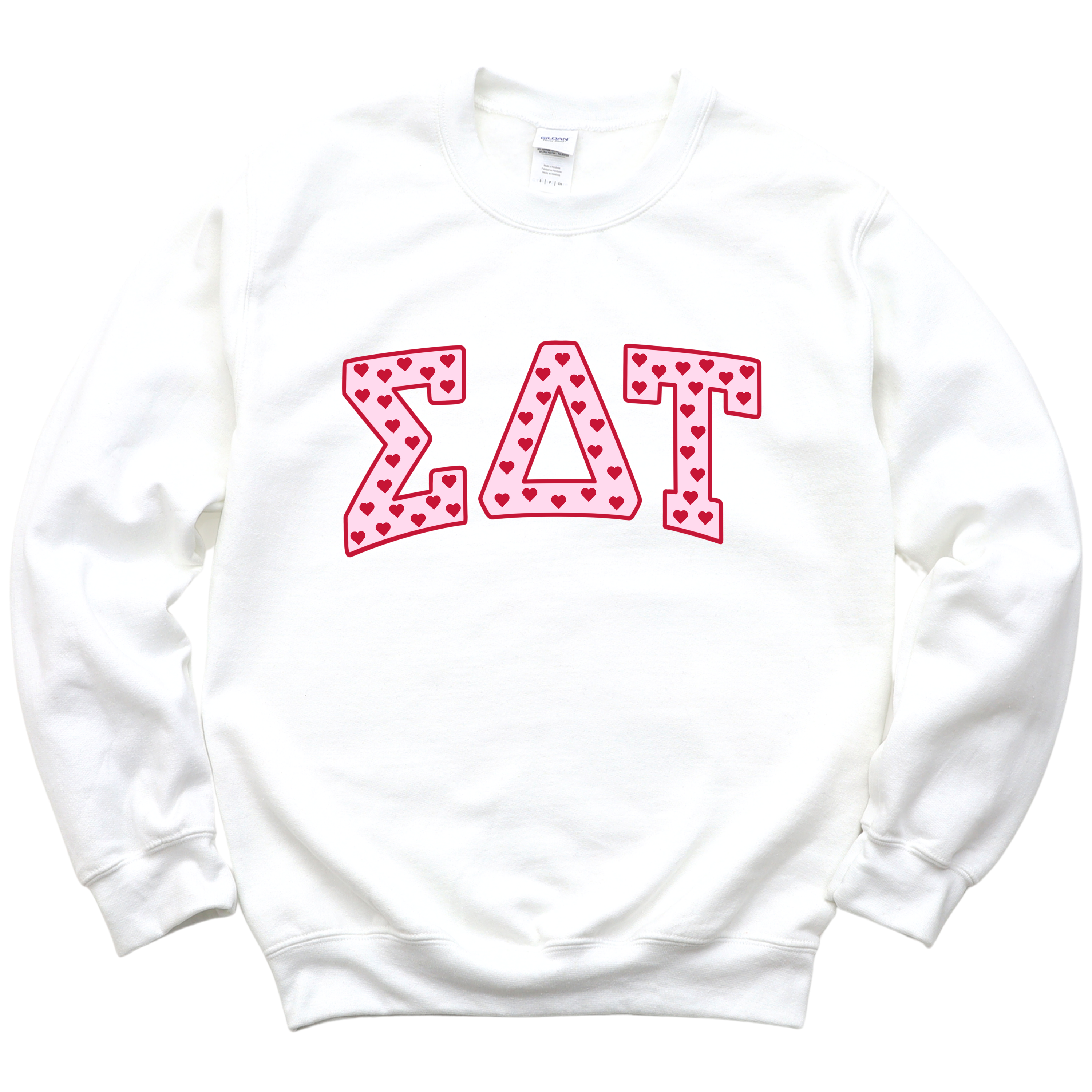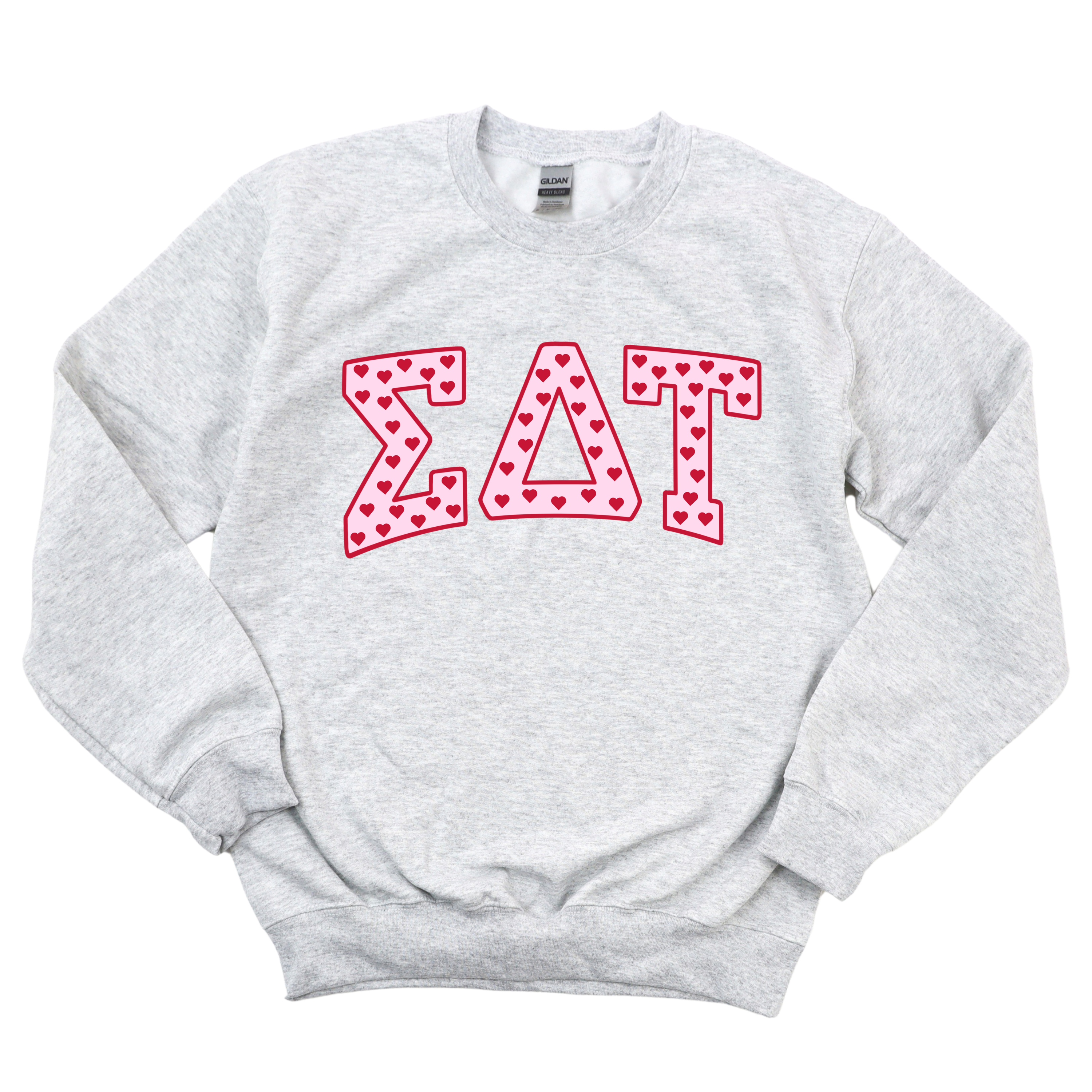 ☆ Classic varsity-inspired Greek lettering with a fun heart detail