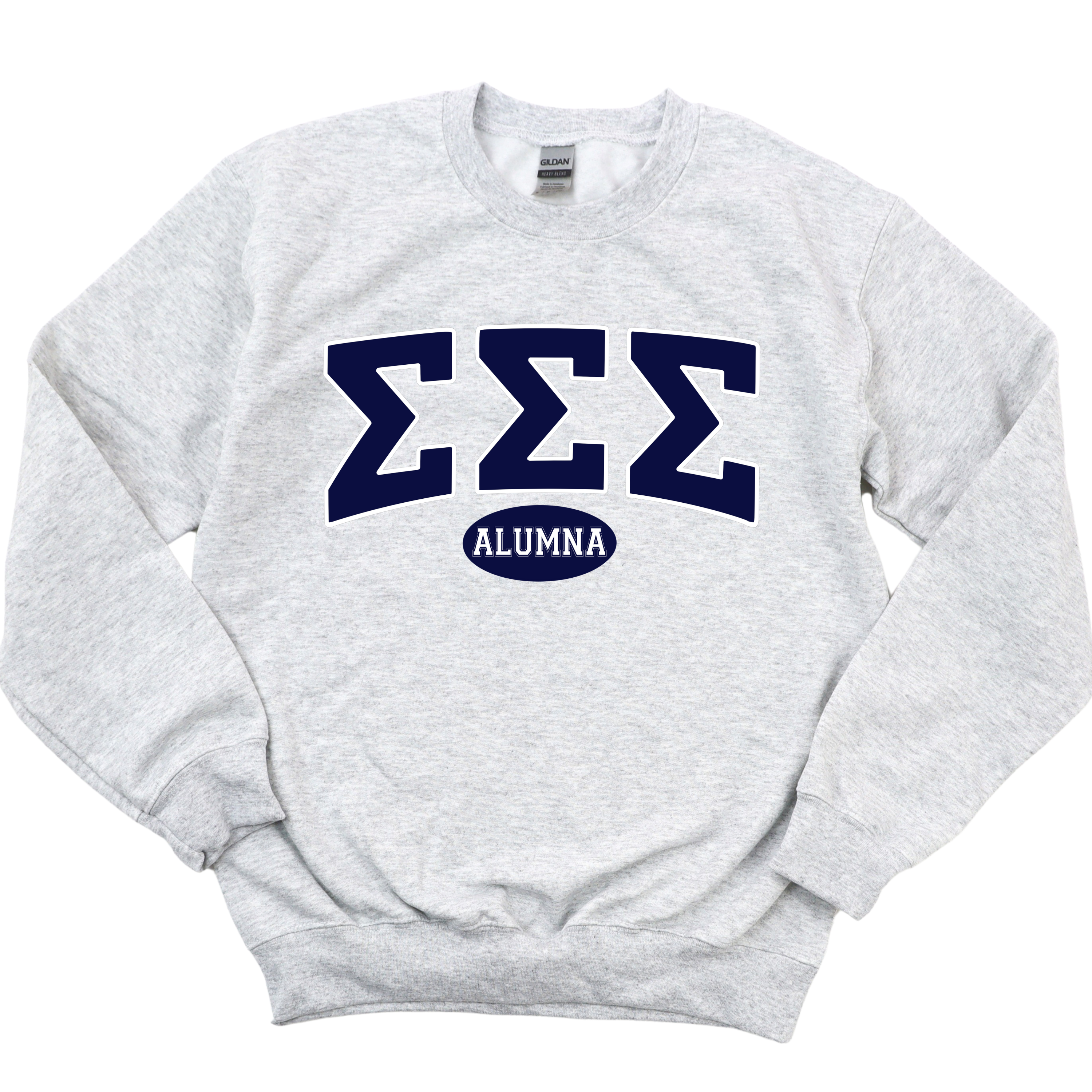Celebrate your sisterhood in style with our Alumna Greek Letters Crewneck — a classic, cozy sweatshirt designed to honor every chapter’s lifelong bond. Featuring bold Greek letters across the chest, this timeless piece is perfect for proud alumnae who want to represent their sorority with comfort and confidence.