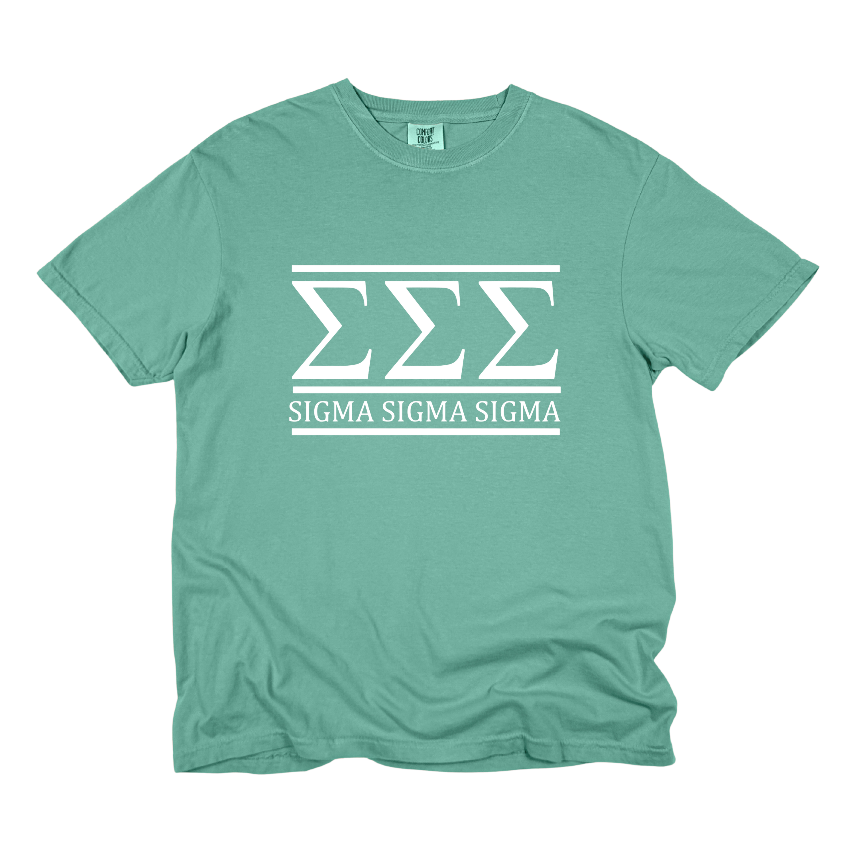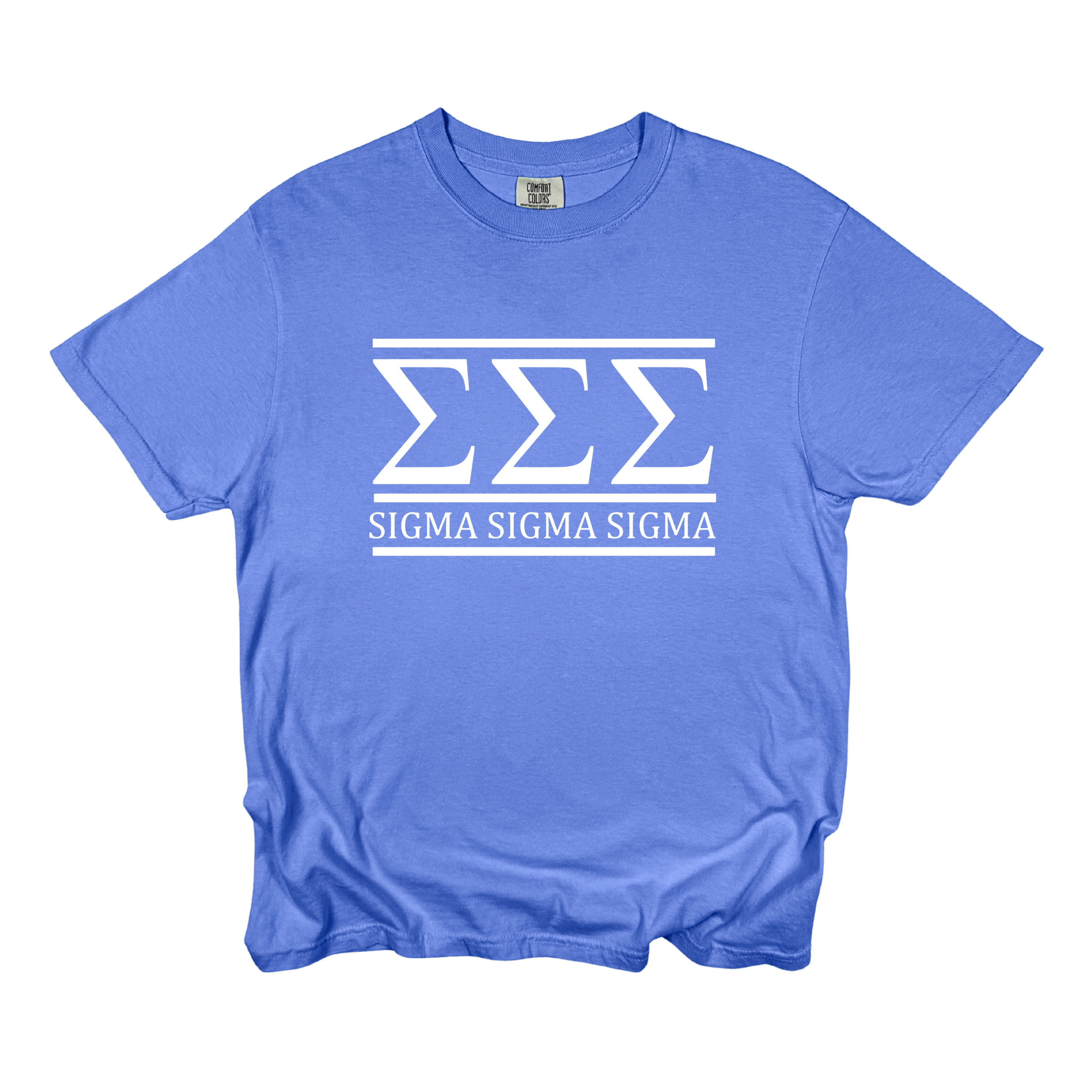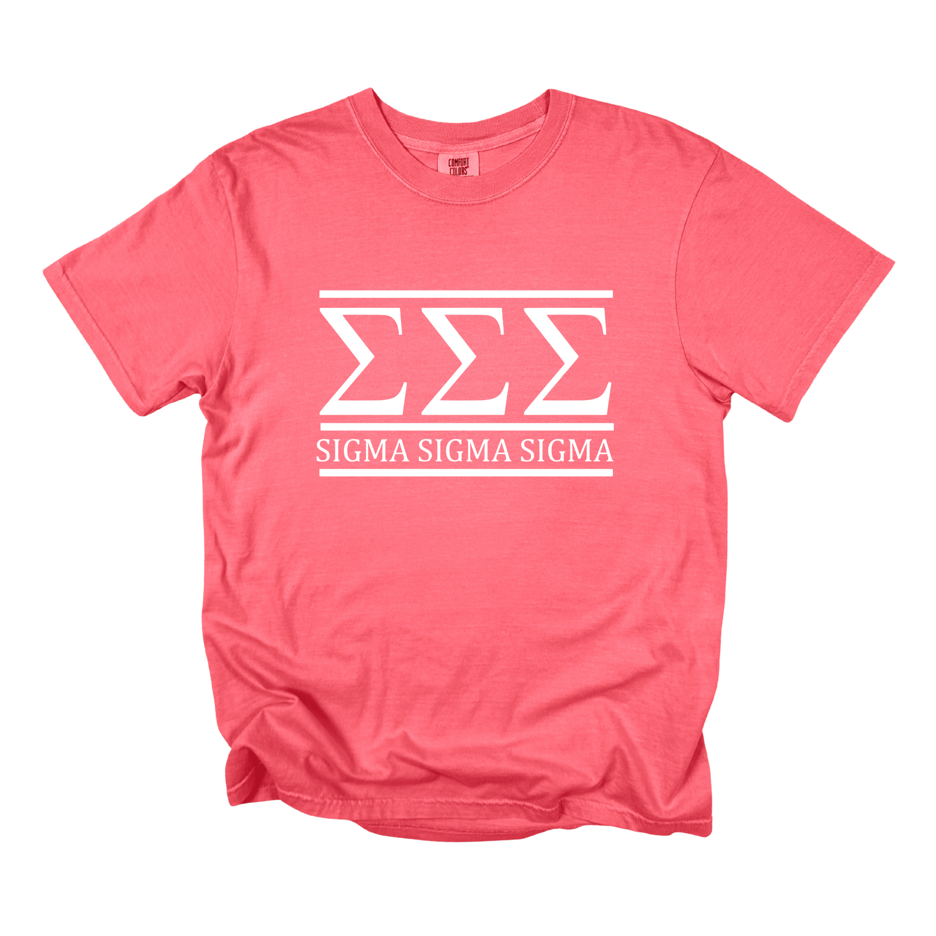 Keep it timeless with our Classic Greek Letters Sorority Tee — a clean, minimalist design that never goes out of style. Featuring bold white Greek letters and matching text framed by simple horizontal lines, this look is both elegant and effortless. Printed on a soft Comfort Colors tee, it’s the perfect balance of sorority pride and everyday wearability.