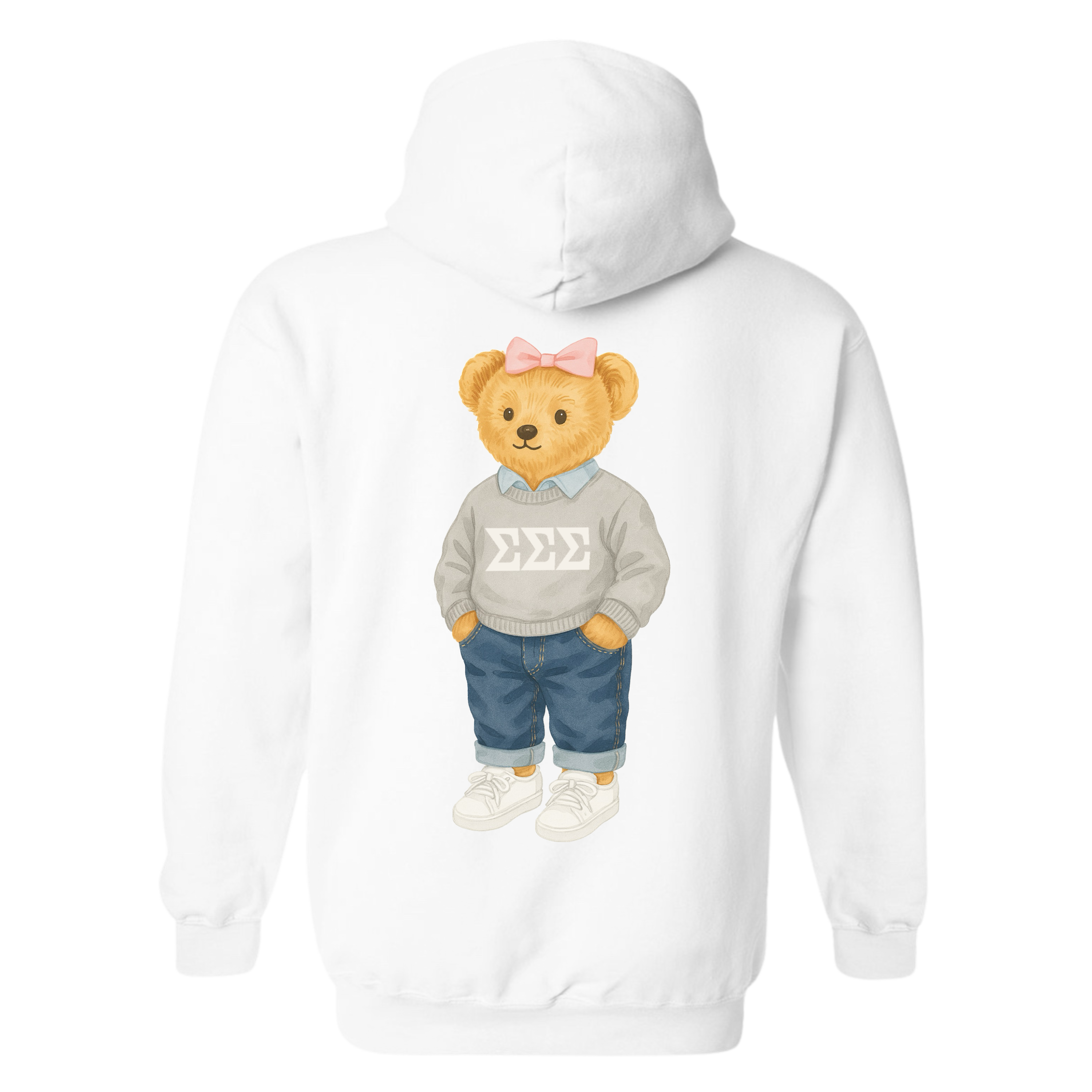 Say hello to The Cozy Bear hoodie — the cutest way to stay warm and show off your sorority pride. This premium unisex hoodie features a mini Cozy Bear graphic on the front right chest and a full-size Cozy Bear design on the back, complete with your sorority’s Greek letters on the bear’s sweater. It’s trendy, nostalgic, and effortlessly adorable.