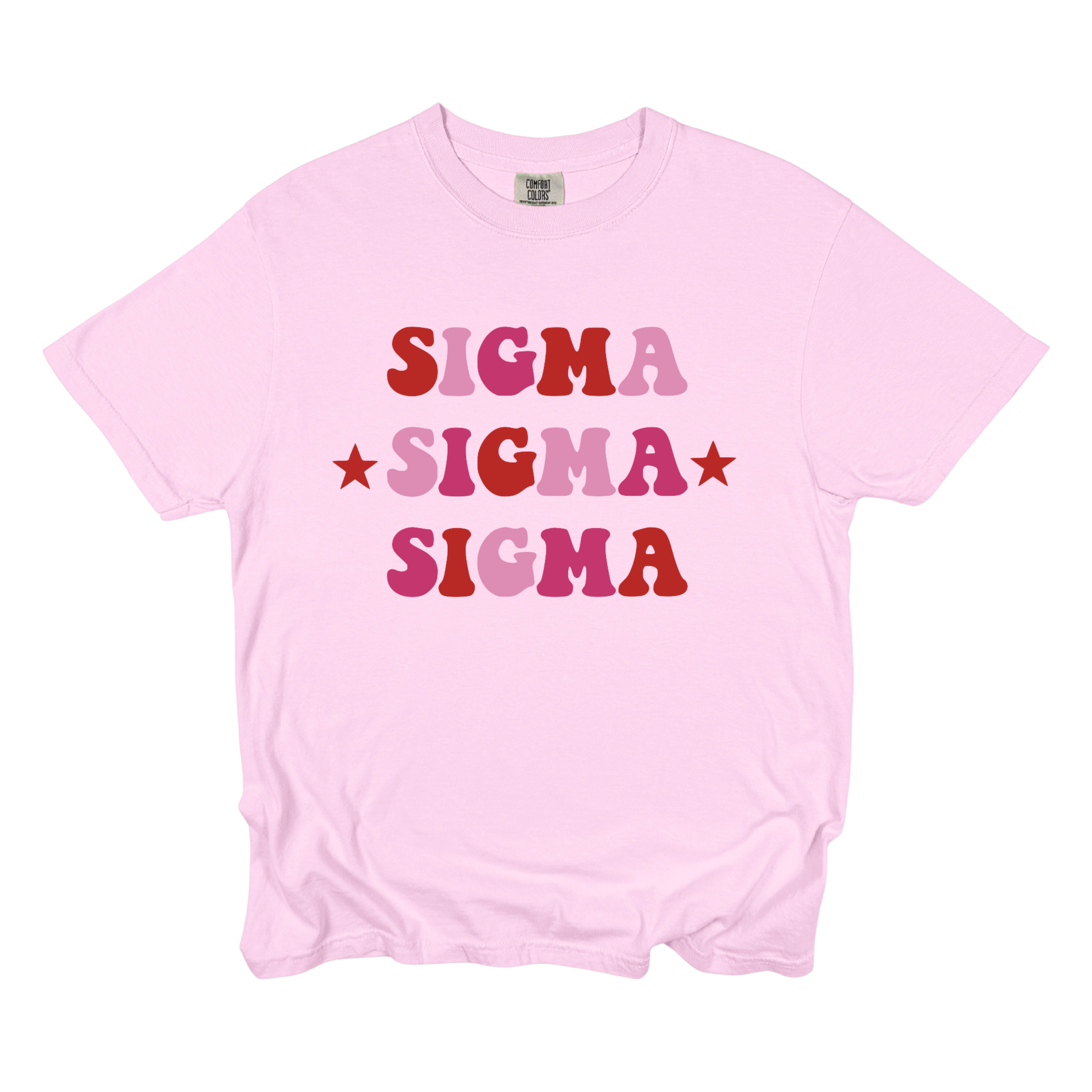 Show off your sisterhood in style with this retro pink and red sorority tee! Designed with bold, bubbly lettering in shades of cherry red, bubblegum pink, blush, and rose, this design pops beautifully against the light pastel pink Comfort Colors tee. The mix of warm, girly tones gives it a fun and nostalgic feel — perfect for bid day, big/little reveal, or everyday campus wear.