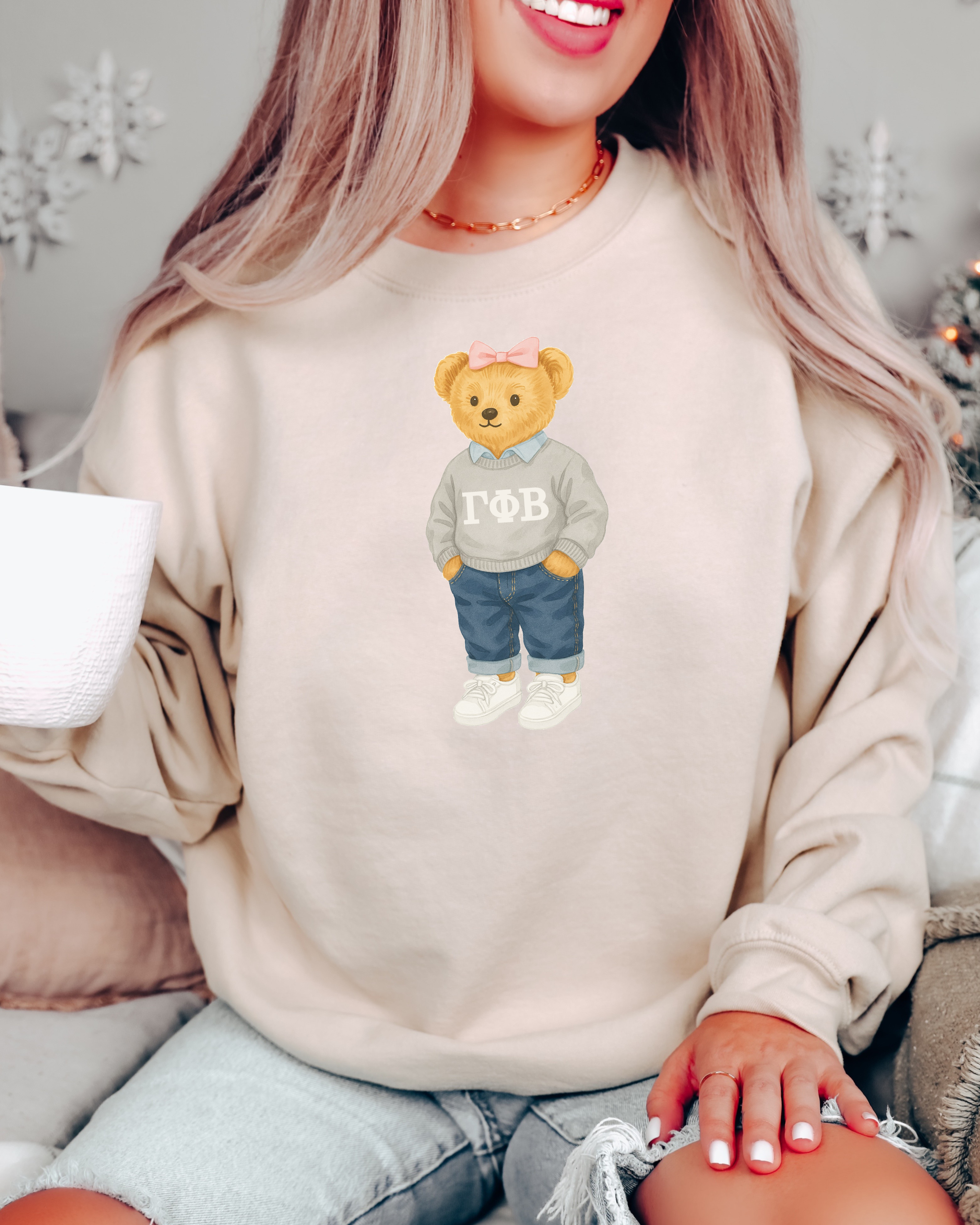 Designed for the girl who loves a timeless, collegiate aesthetic, this sweatshirt blends comfort with charm. The Cozy Bear graphic is printed with high-quality detail, giving the sweatshirt that boutique look sorority girls are obsessed with.