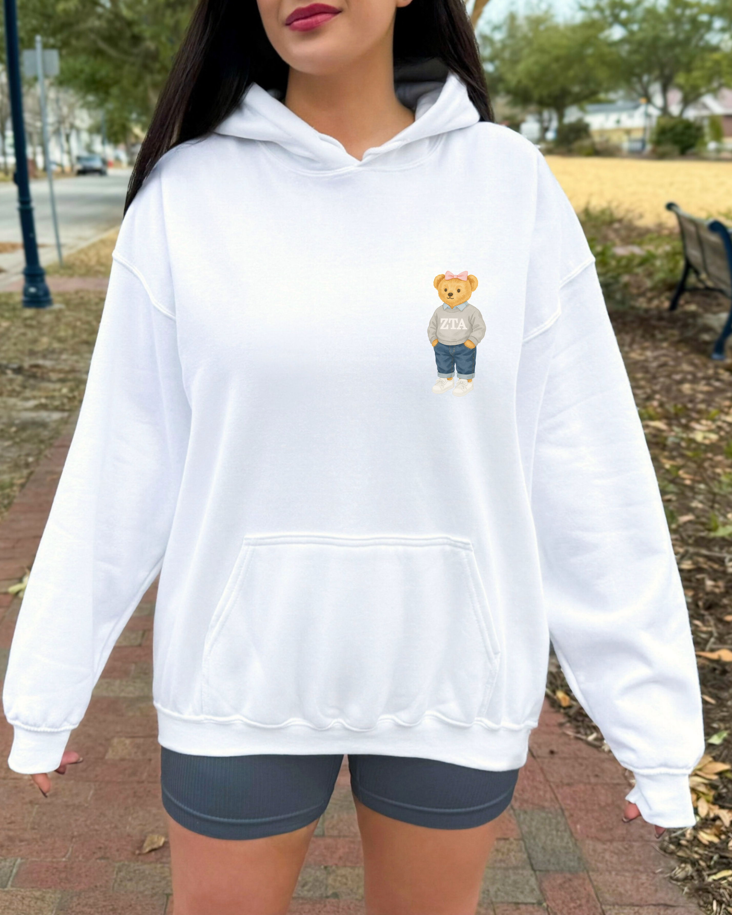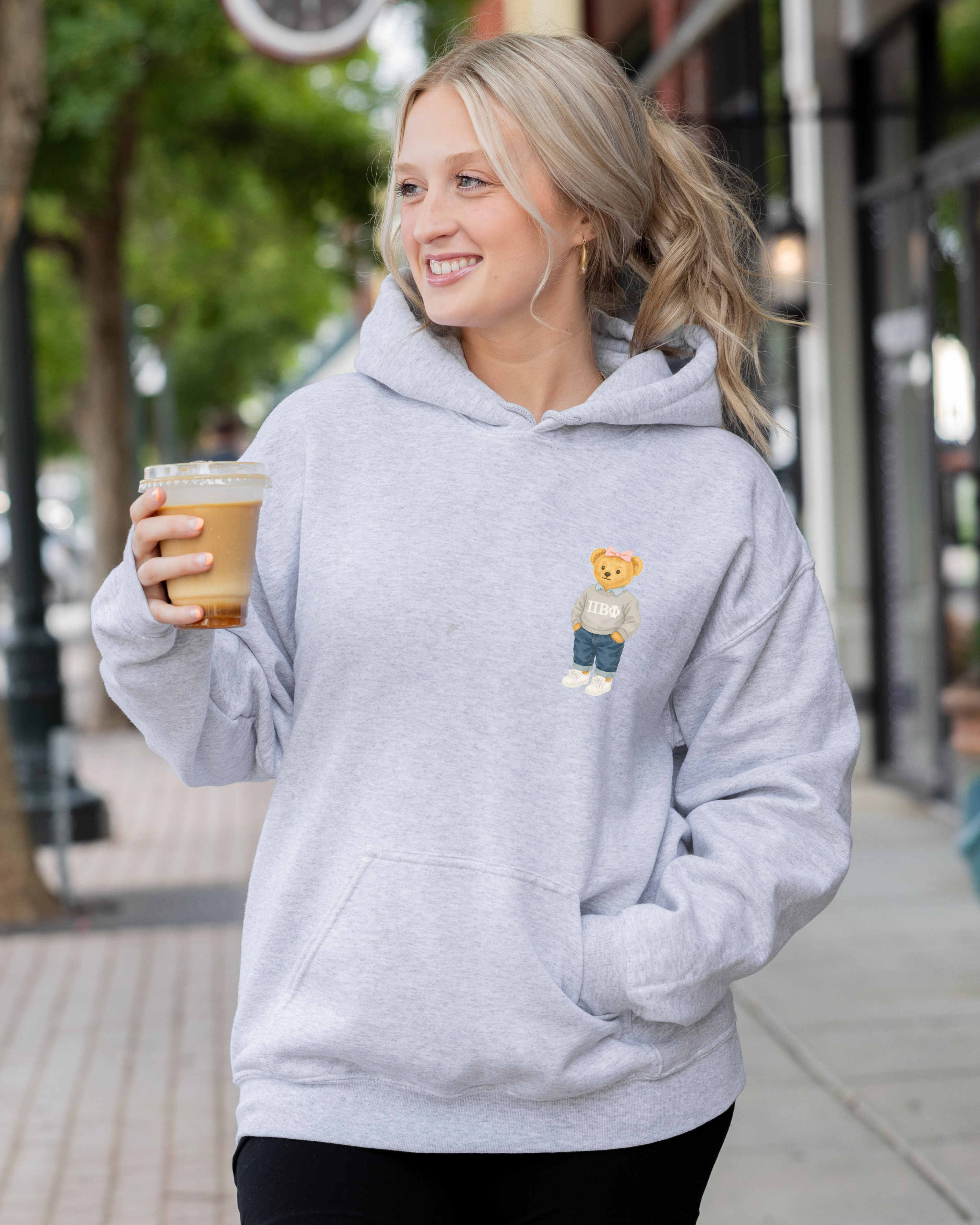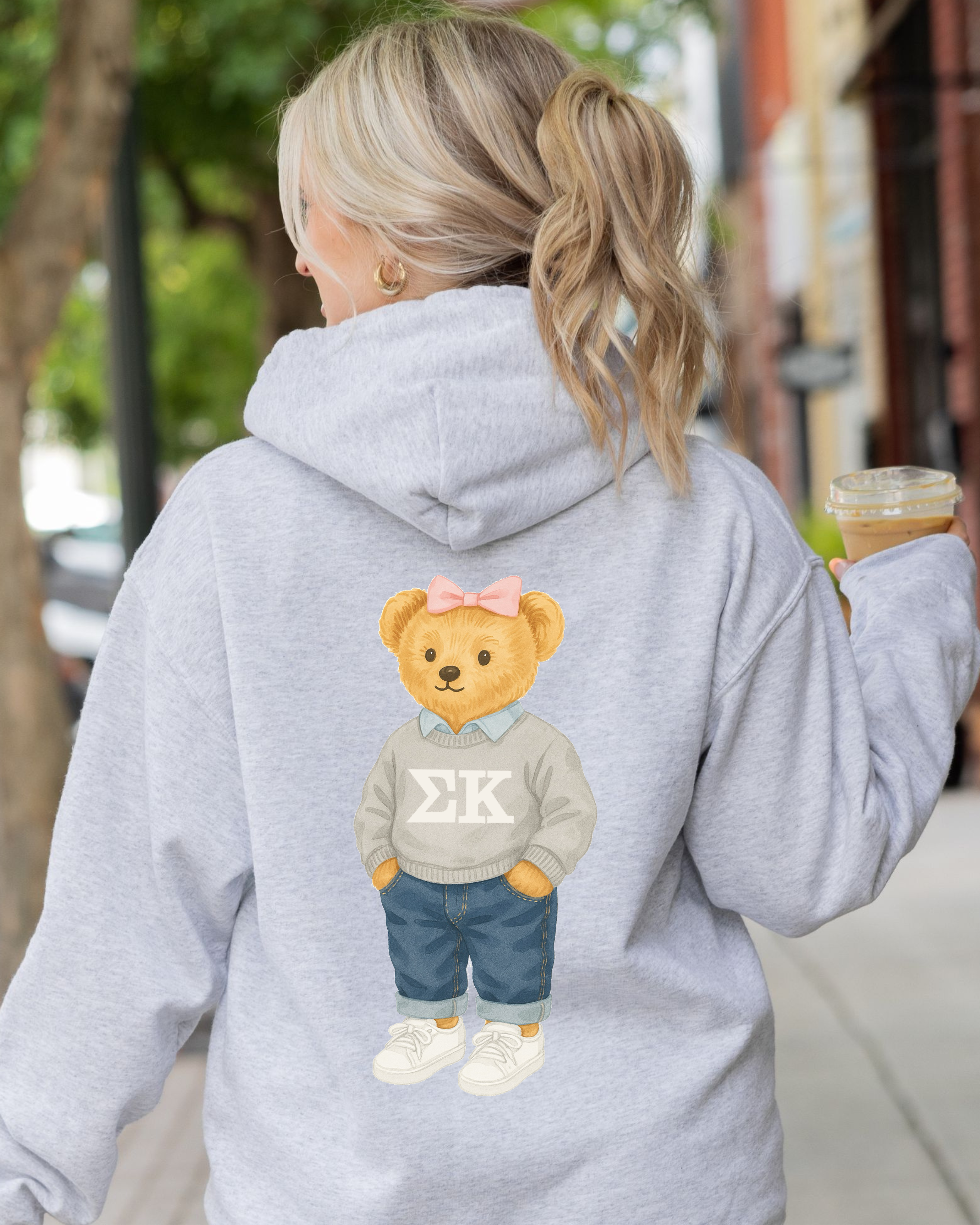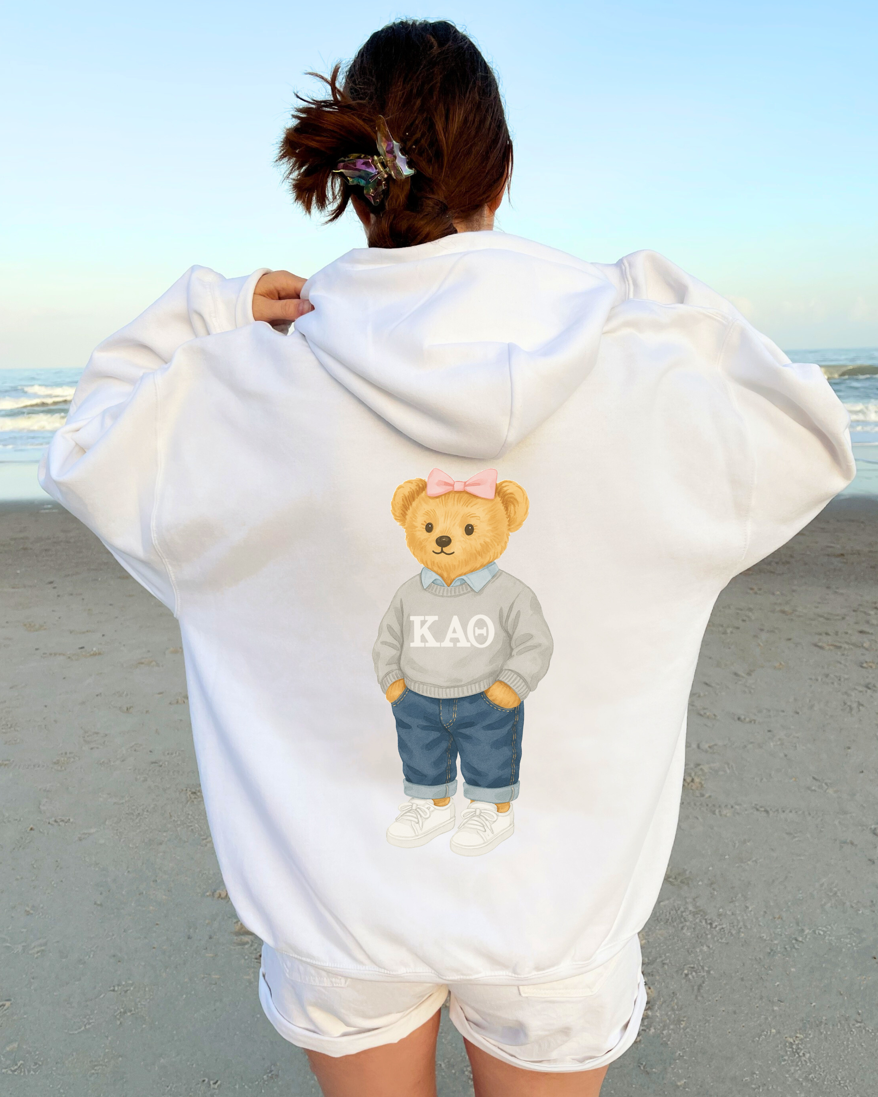 Meet the hoodie you’ll never want to take off. The Cozy Bear Hoodie features the sweetest preppy bear dressed in your sorority letters — a classic, polished design that instantly elevates your everyday comfort look. Soft, warm, and perfectly oversized, this hoodie is made for cozy study nights, chilly campus walks, and all things sisterhood.