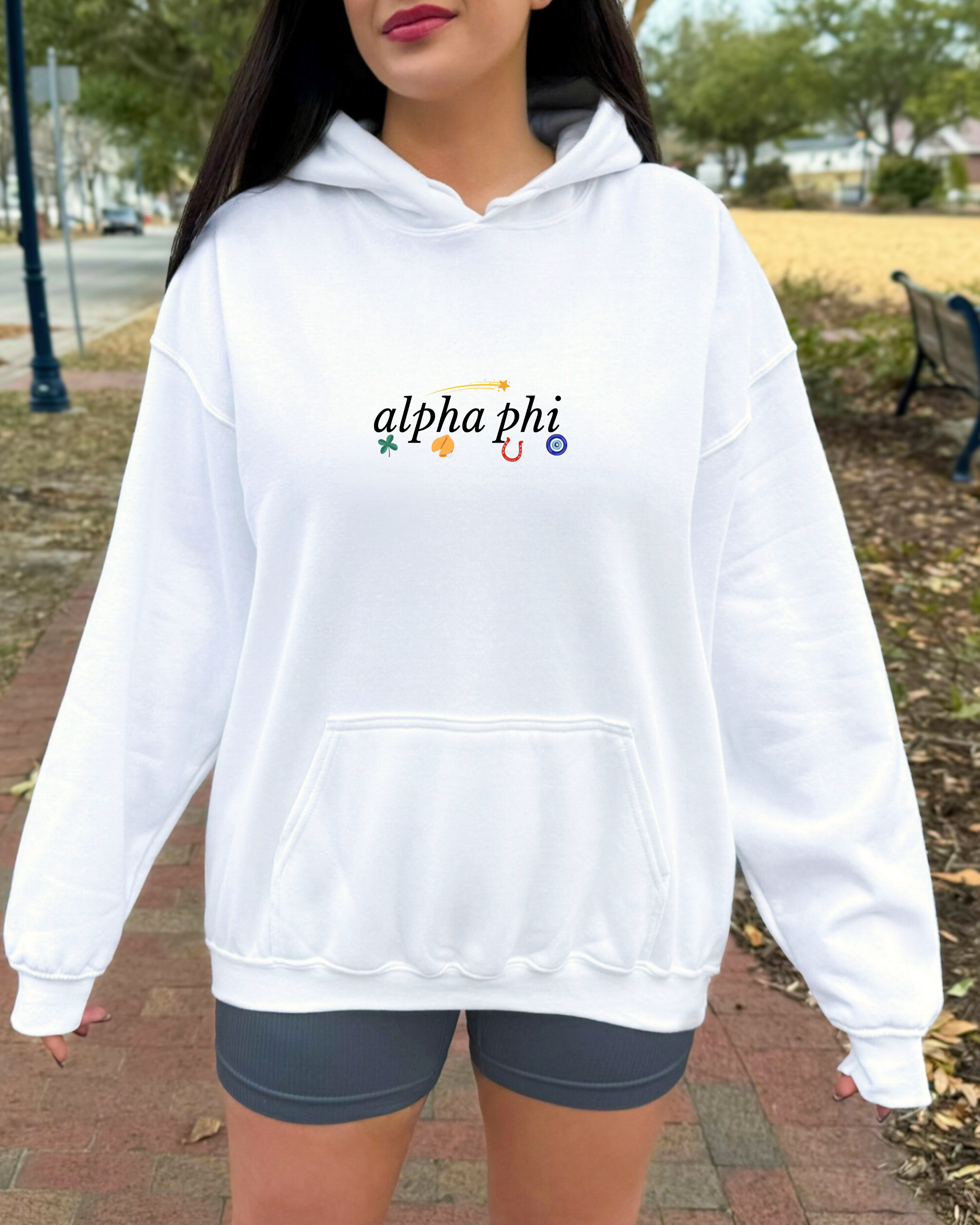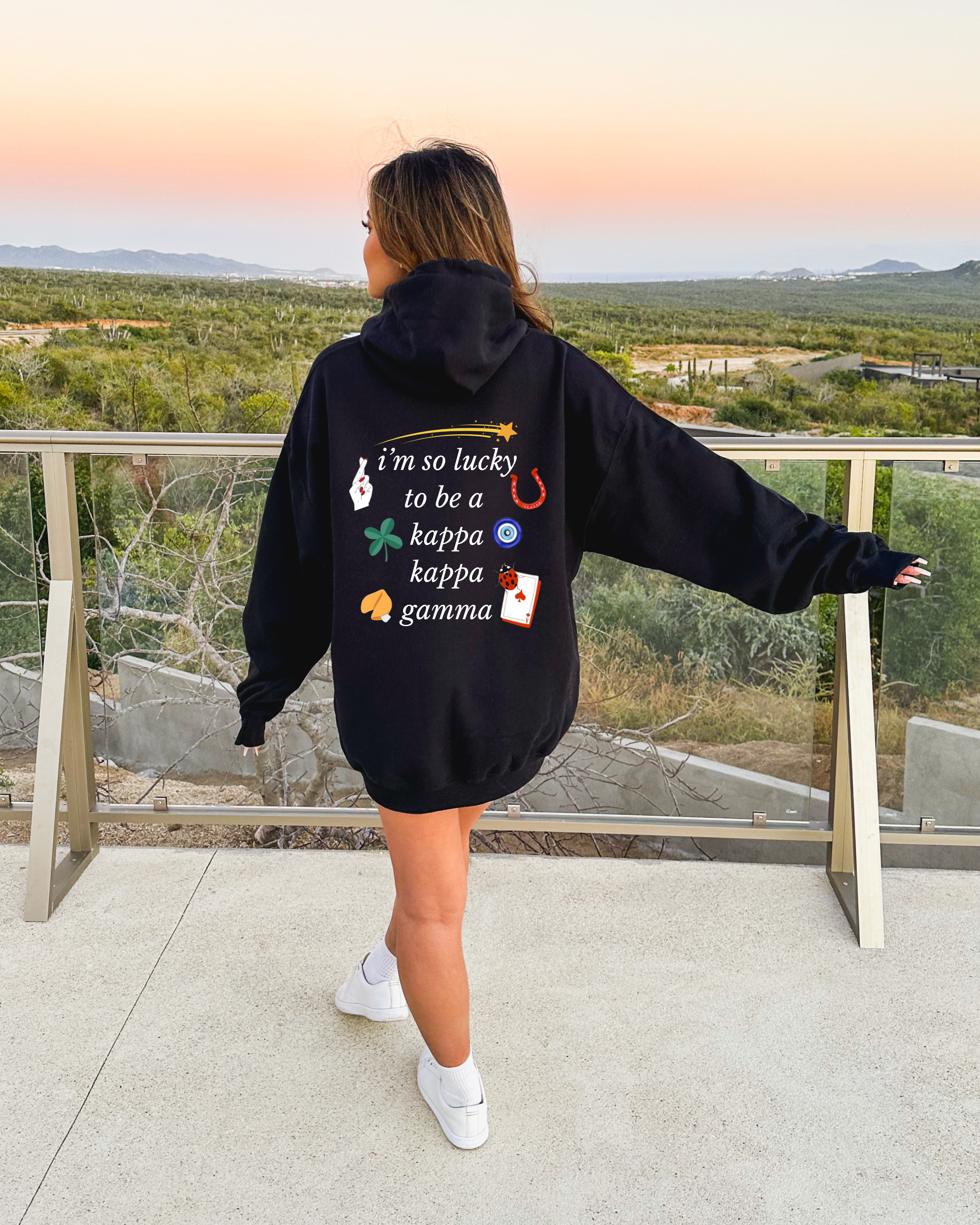 Meet your new everyday essential: the Lucky Girl Hoodie. Designed for comfort, crafted for sorority life, and made to be worn on repeat. This soft, high-quality hoodie features a clean, minimalist design that pairs perfectly with any chapter’s aesthetic—making it the ultimate go-to for big/little gifts, chapter events, recruitment, bid day, or everyday campus outfits.