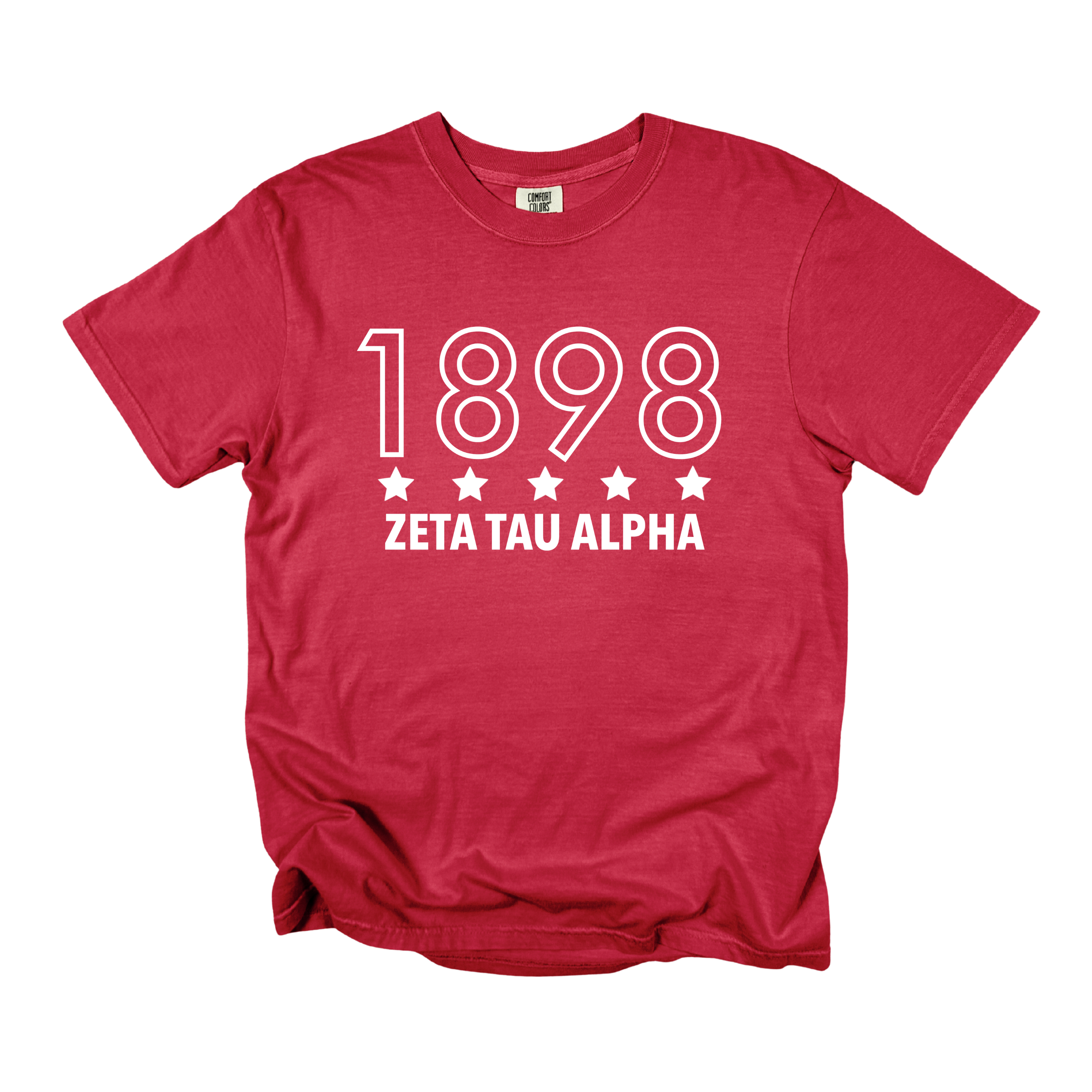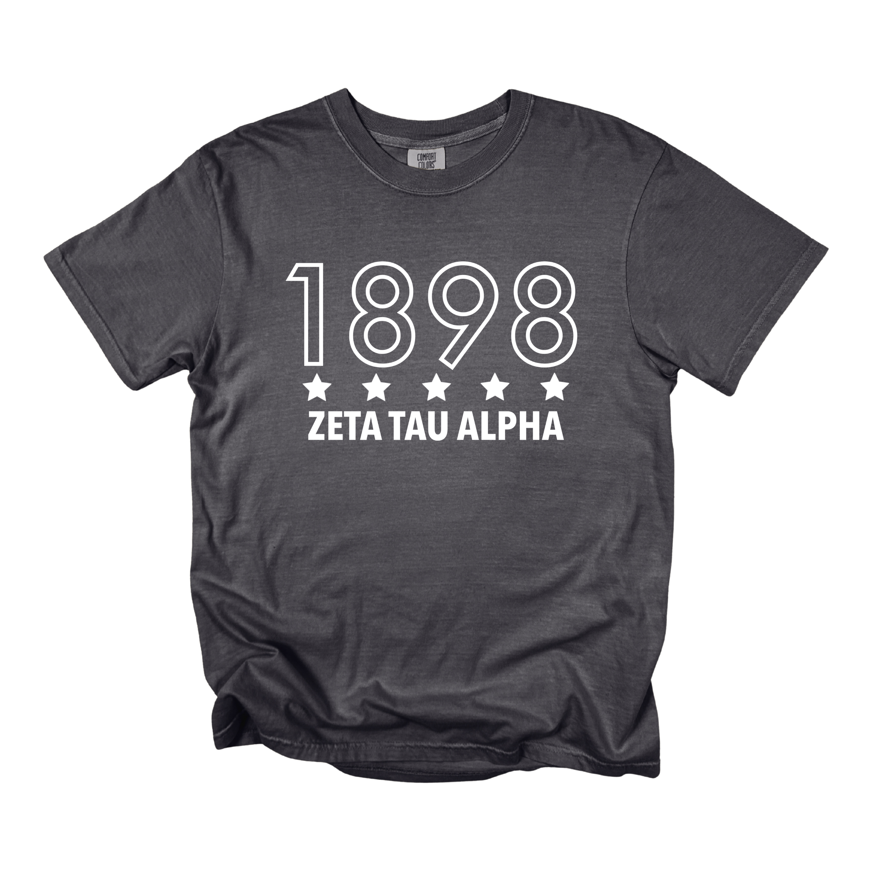 Level up your sorority style with this classic Comfort Colors tee – loved for its ultra-soft, lived-in feel and relaxed fit. Perfect for everyday wear or chapter events, this design features bold, retro-inspired typography paired with standout star details for a timeless, collegiate vibe.