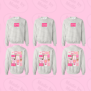 Each matchbox graphic highlights fun symbols, phrases, and color-coordinated elements inspired by your sorority, creating a playful, collectible look that stands out in photos and on campus. This crewneck is perfect for bid day, big/little, recruitment, or every day you want to look effortlessly cute.